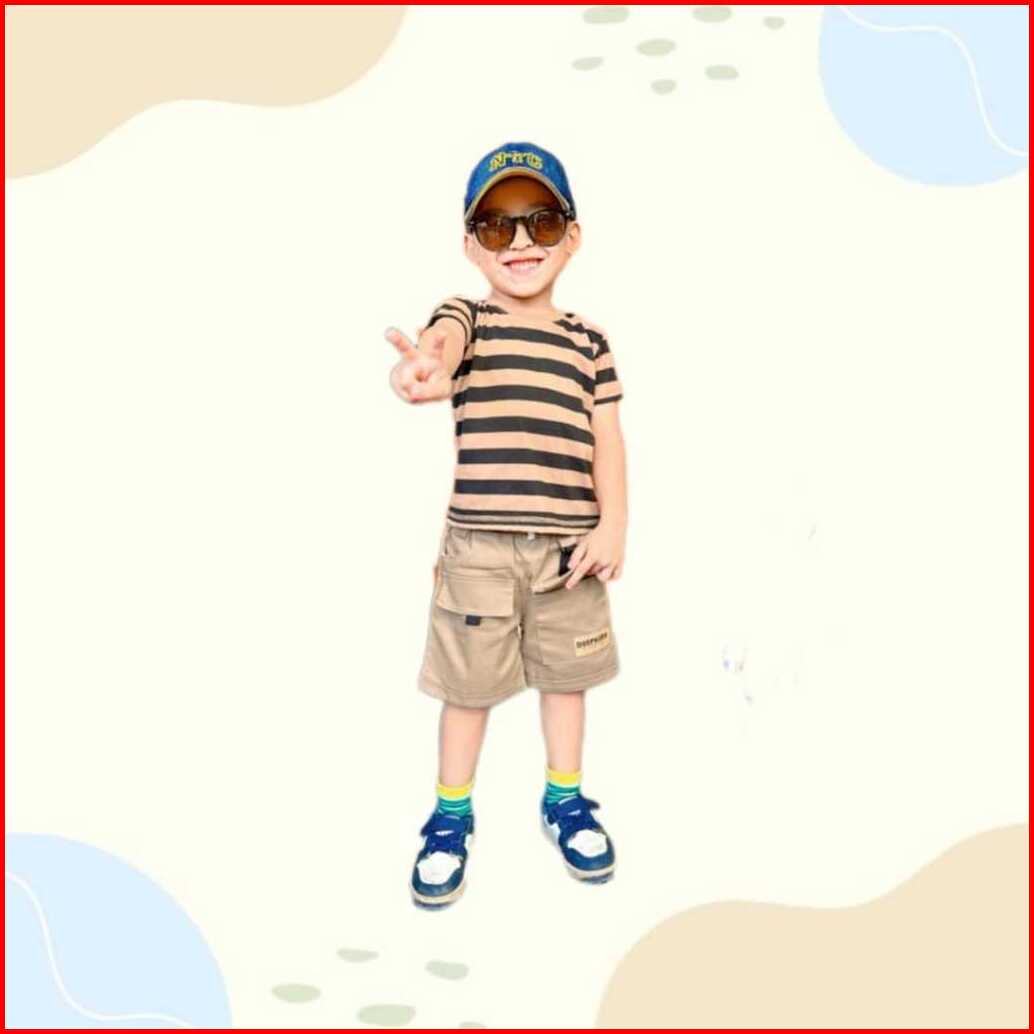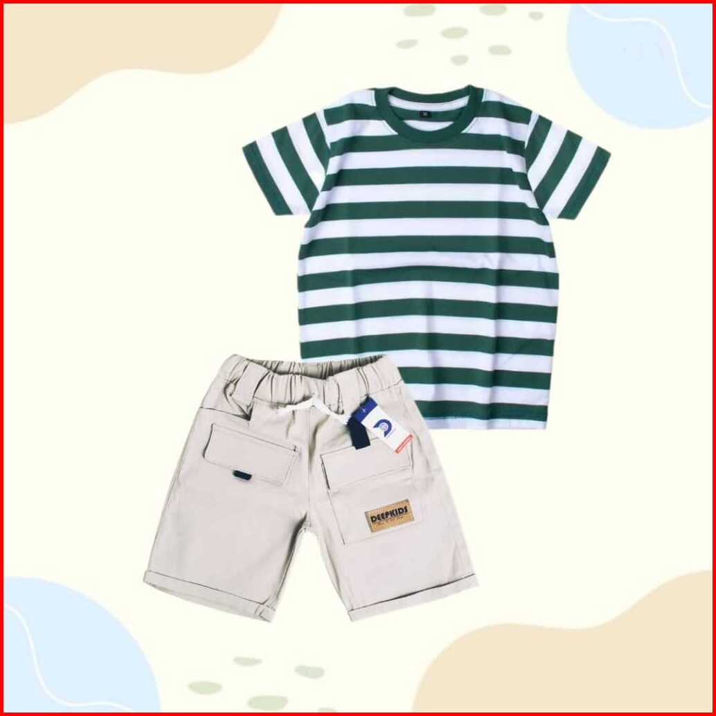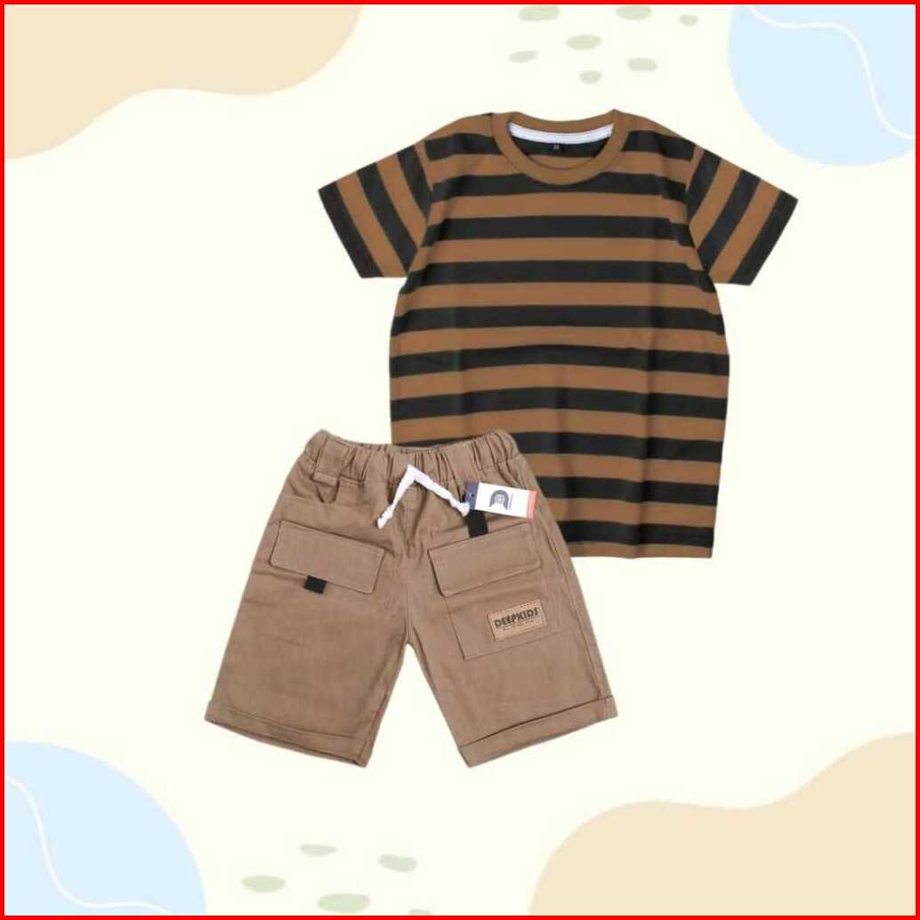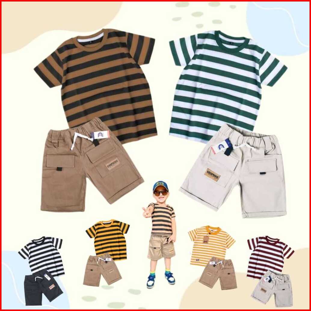 Setelan Anak Laki Laki Stripe Salur Usia 1-12 Tahun Bahan Cotton 24s Chinos Premium