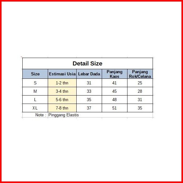 S (1-2thn), M (3-4thn), L (5-6thn), XL (7-8thn)