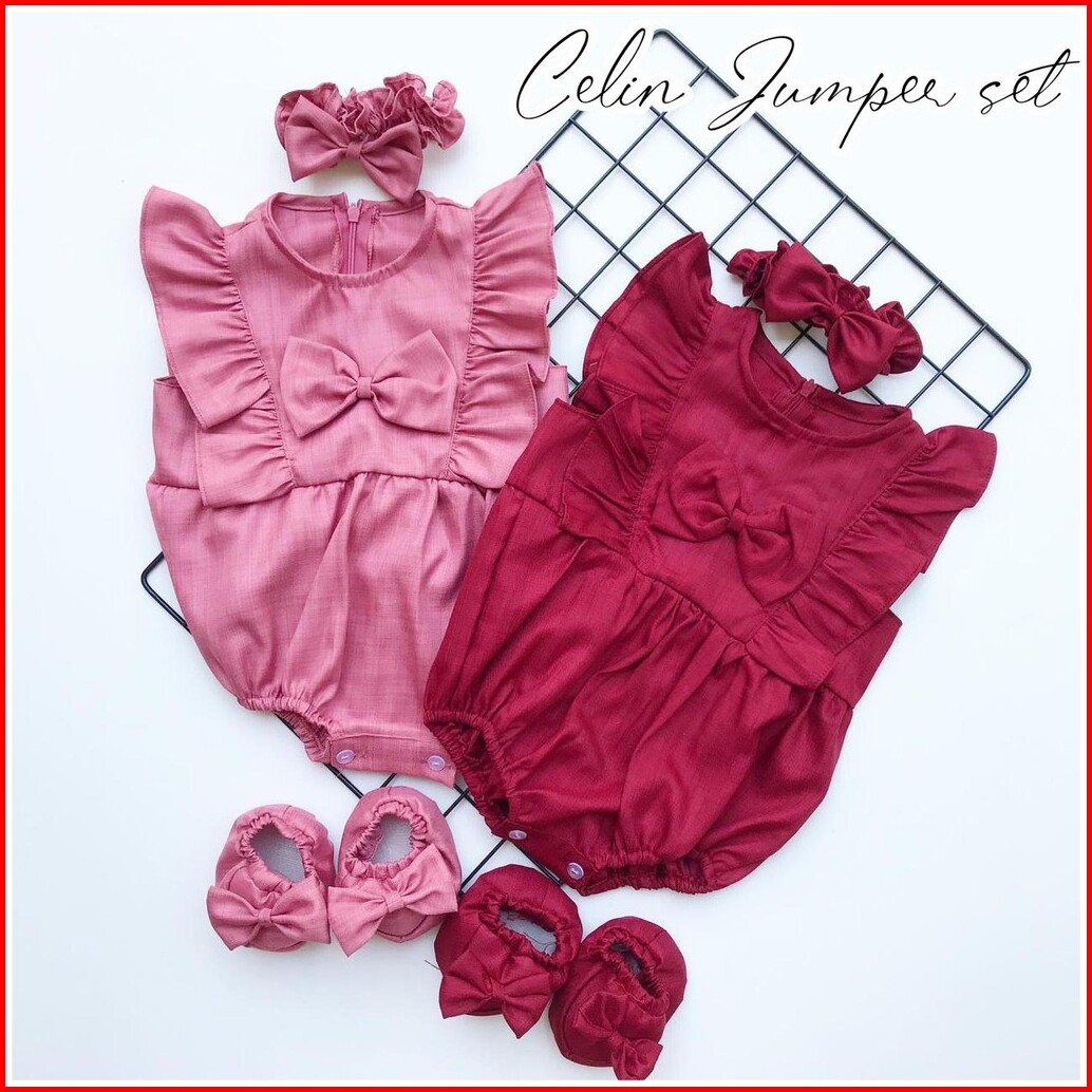 Jumper Set Baju Setelan Jumperbandana Sepatu Pergi Lucu Fashion Anak Bayi Perempuan Amanah Madeline Celly Scarlette Velv