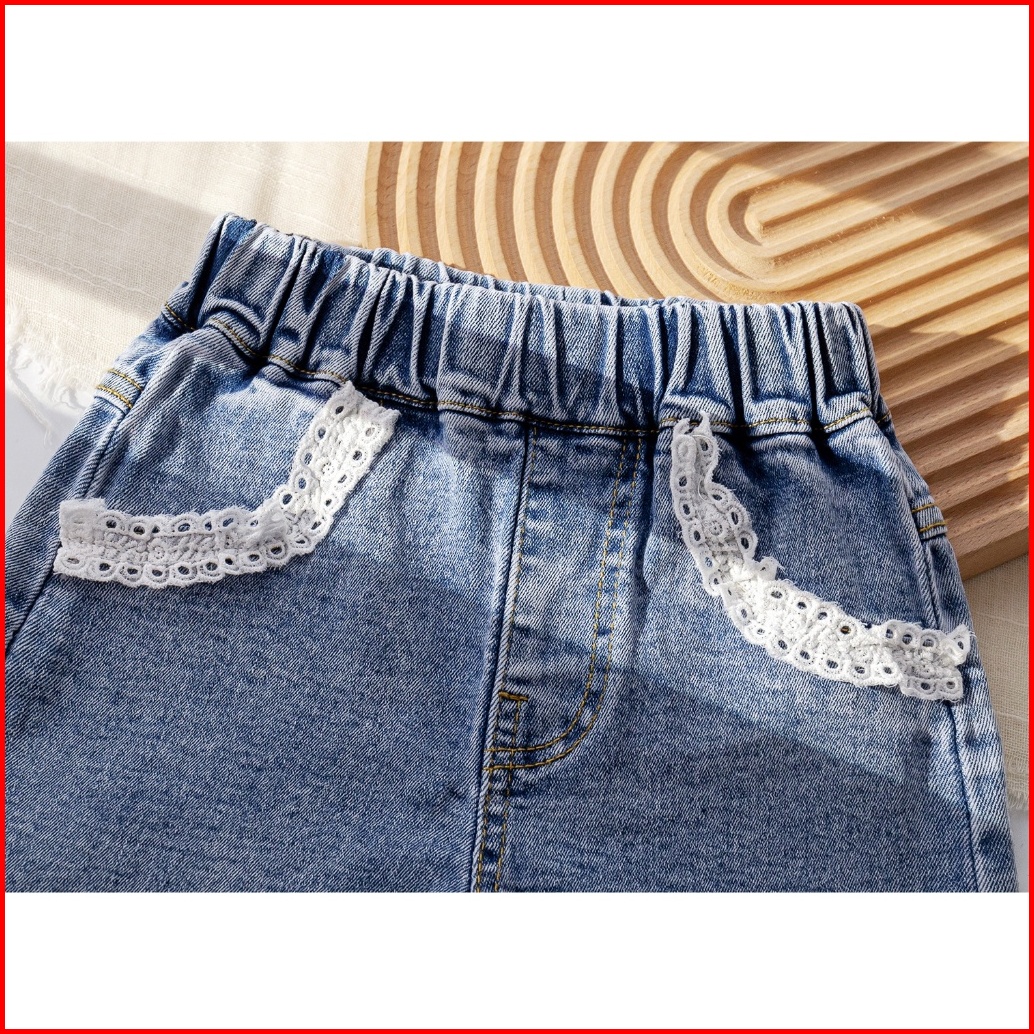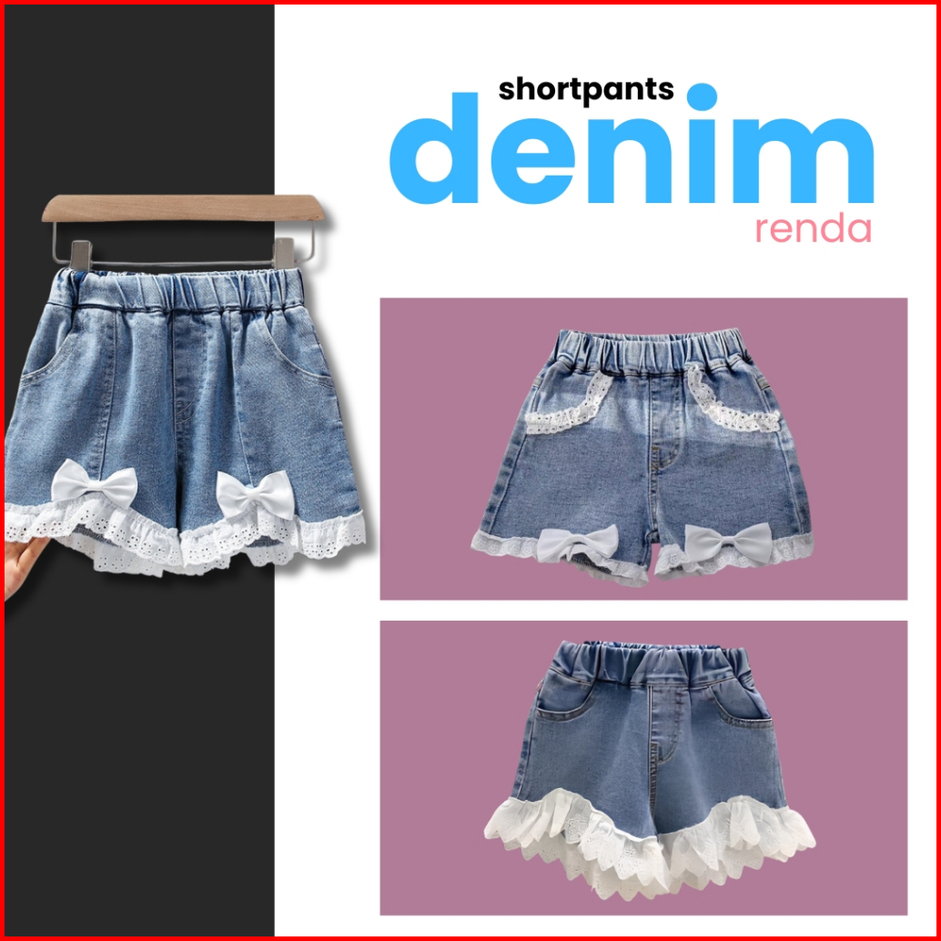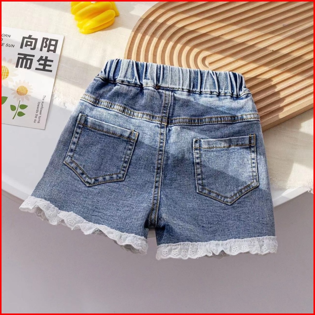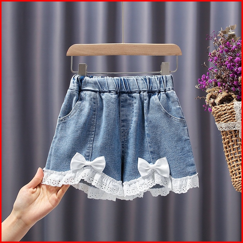 Princesscoco 3-8 Tahun Shortpants Anak Perempuan Denim Jeans Celana Pendek Renda Santai Fashion Anak
