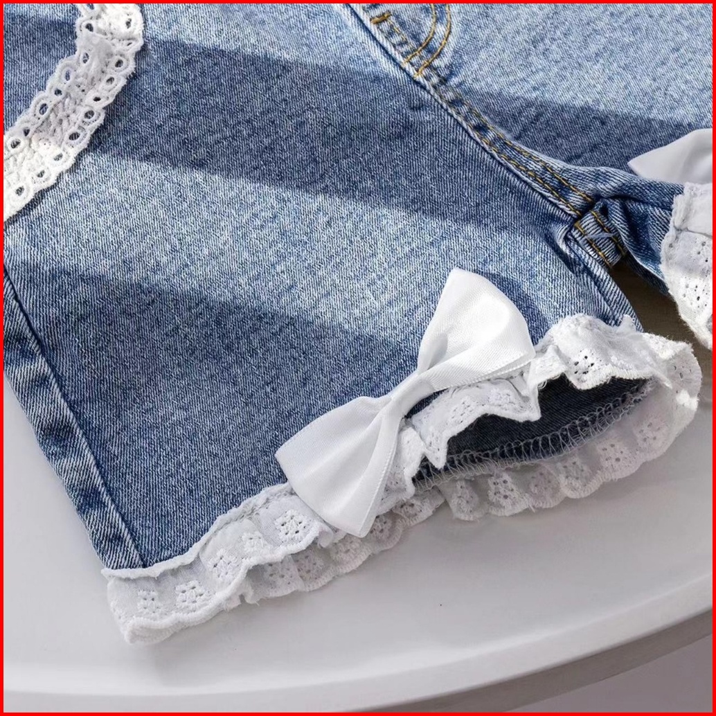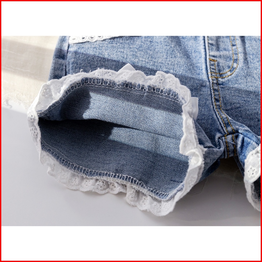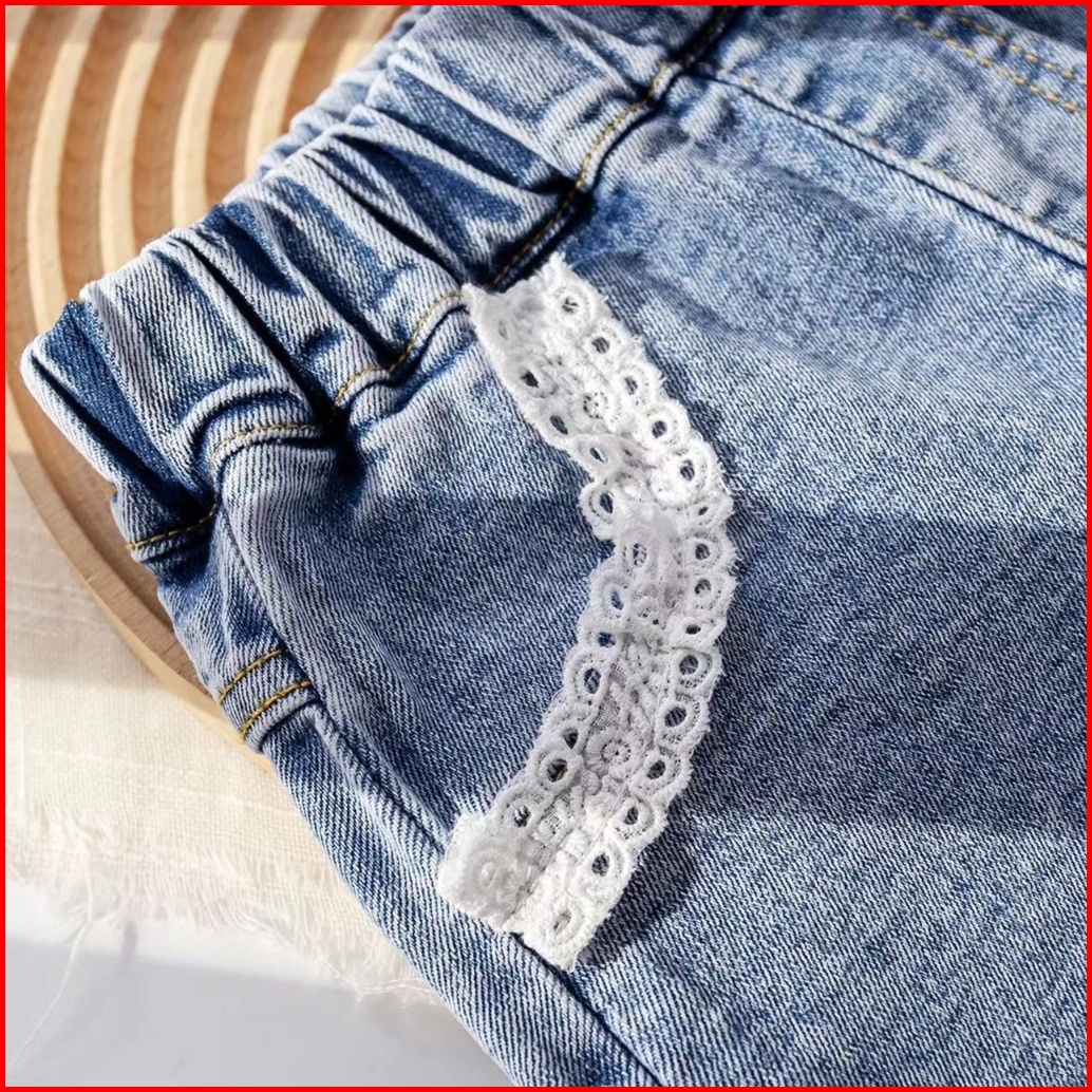 Princesscoco 3-8 Tahun Shortpants Anak Perempuan Denim Jeans Celana Pendek Renda Santai Fashion Anak