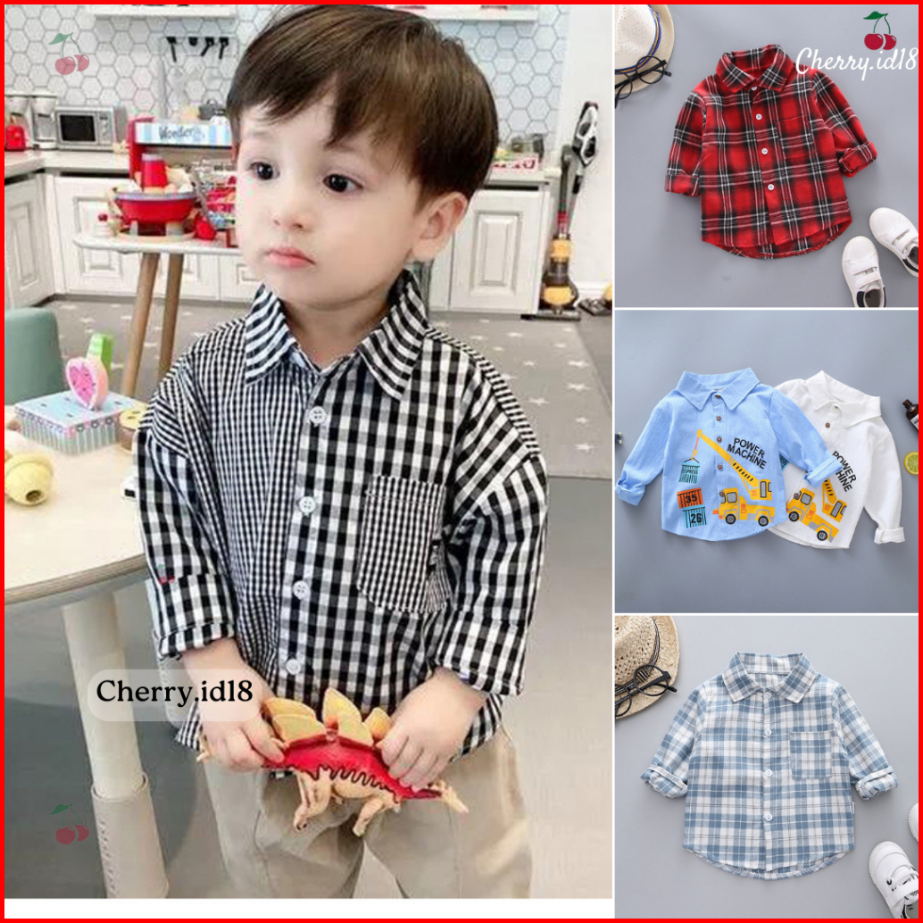 Cherry Atasan Kemeja Anak Lengan Panjang Motif Traktor Baju Anak Laki Laki Kemeja Distro Anak Ak002
