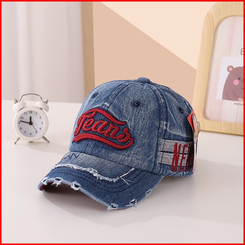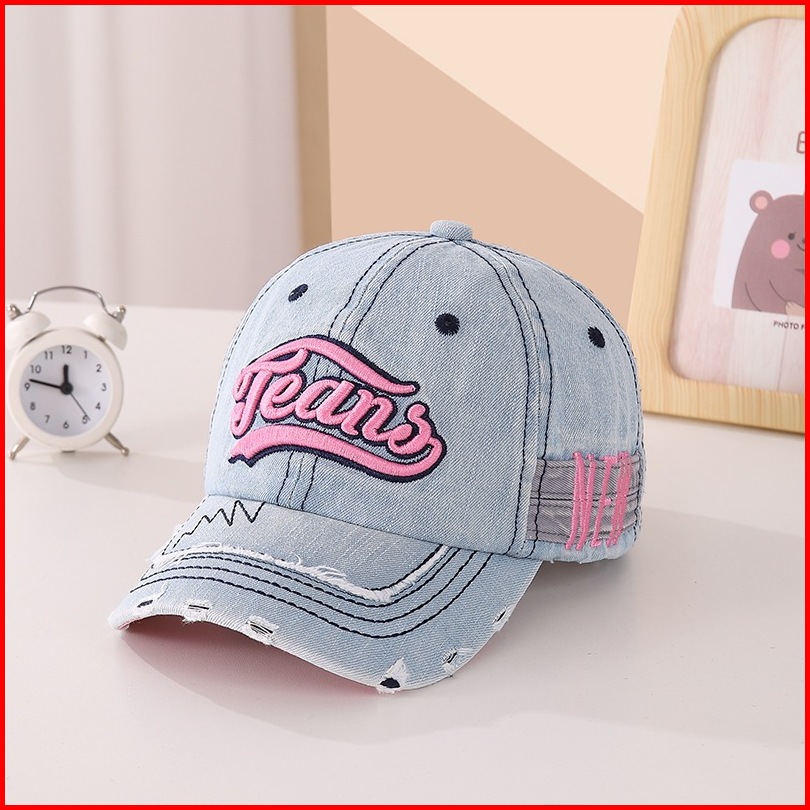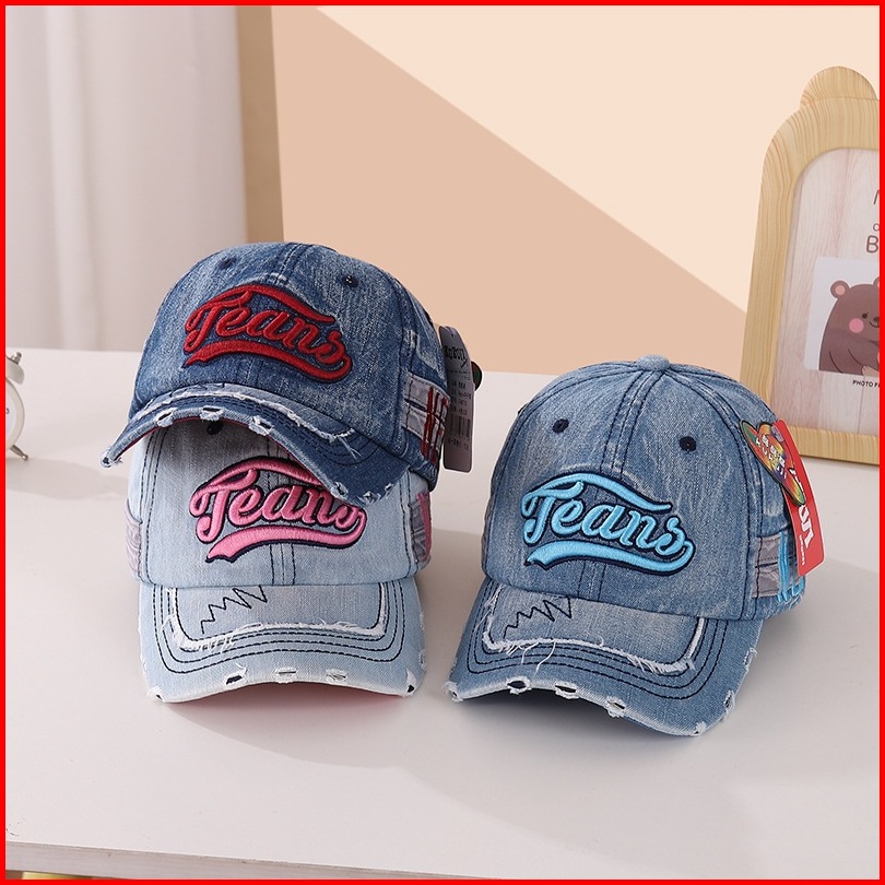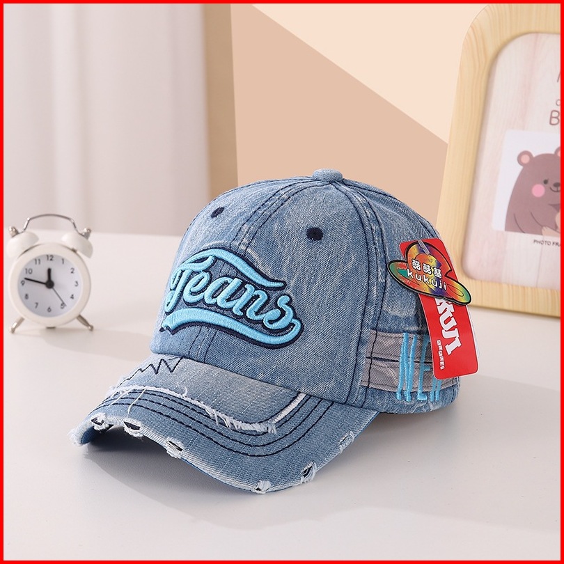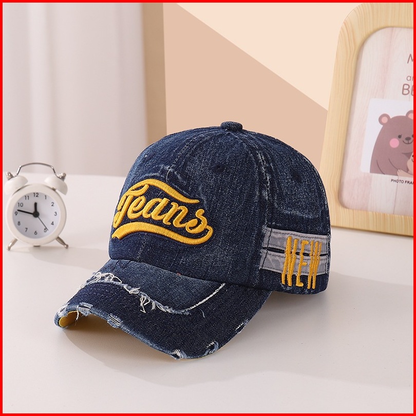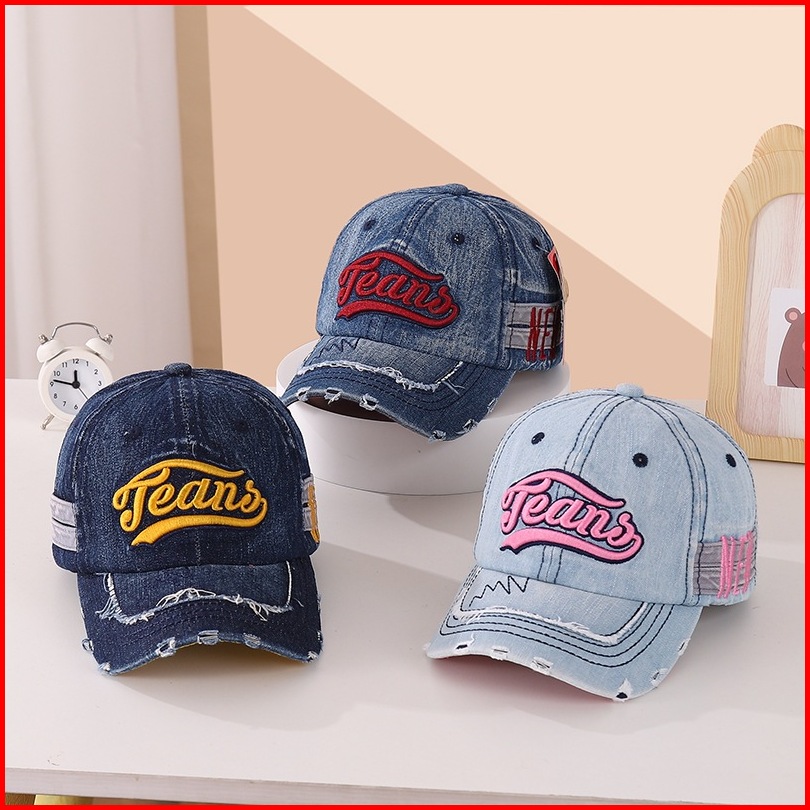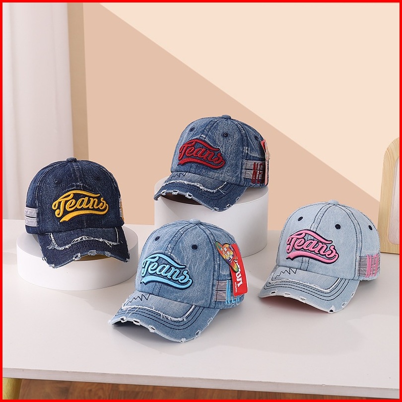 Topi Bisbol Denim Baru Topi Anak-anak Cuci Jean Bordir Tulisan Jeans