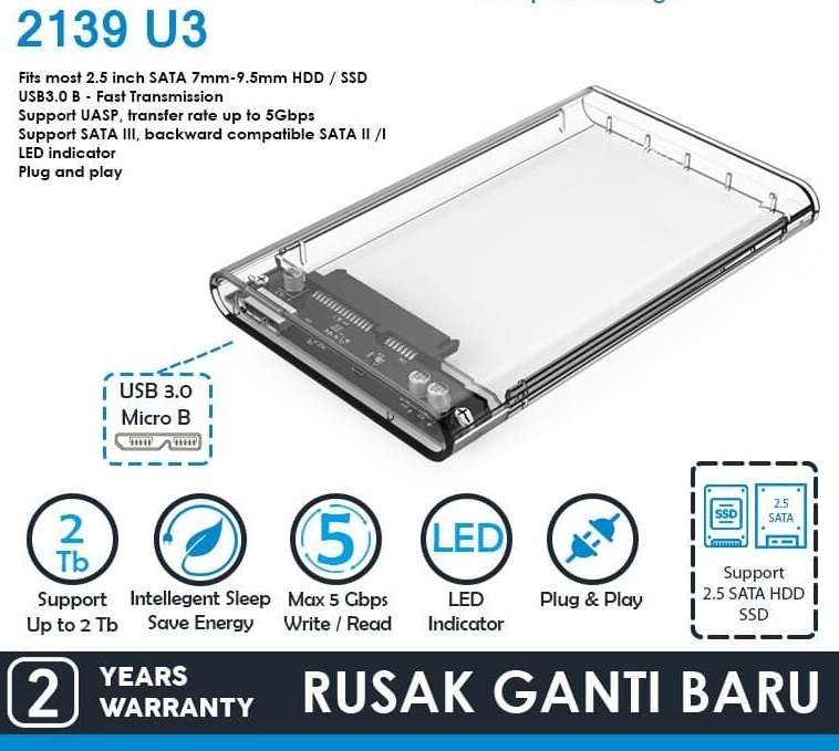 ORICO 2139U3 2.5 inch Transparent USB3.0 Hard Drive Enclosure - 2139U3 casing