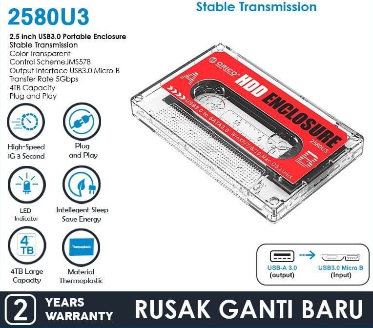 ORICO SSD HDD Casing / Enclosure 2.5in USB3 Vintage Cassette original