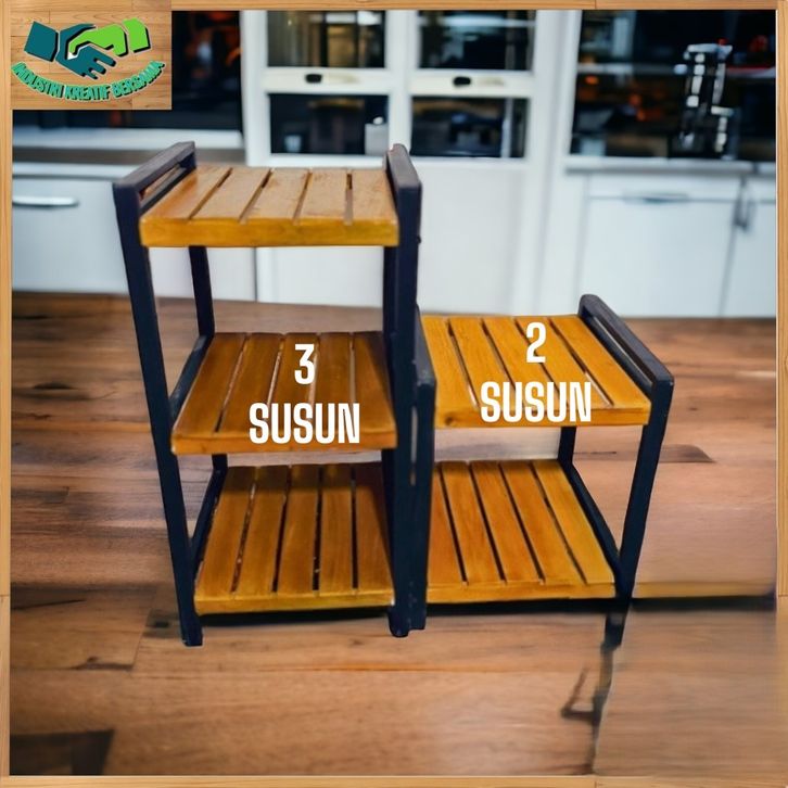 FULL FINISHING Rak Susun Kayu Minimalis Serbaguna / Rak Dispenser, Galon, Rice Cooker 2 Susun 3 Susun Serbaguna dari kay