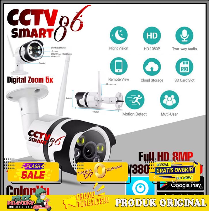CCTV ORI IP KAMERA CCTV V380/V380 PRO WIFI OUTDOOR FULL HD 8MP COLORVU WIRELESS IP CAMERA MALAM BERWARNA