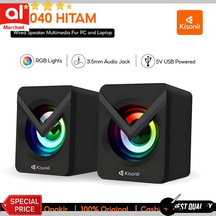 KISONLI Speaker 2.0 Komputer/Laptop Multimedia Lampu LED L 1040 Hitam