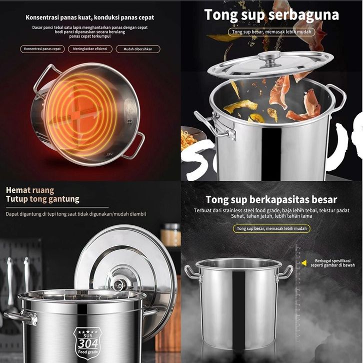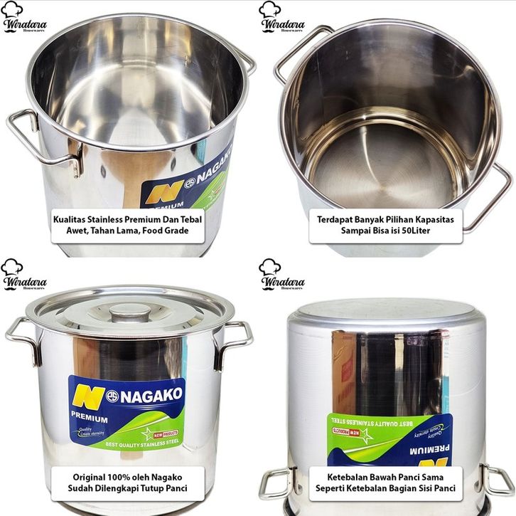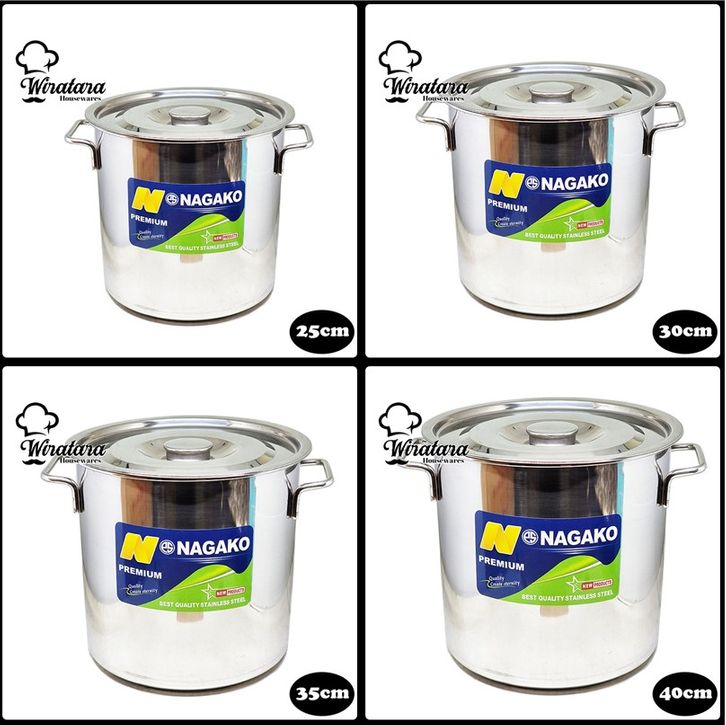 Panci Stock Pot Nagako Panci Stainless Tebal Premium Tutup Stock Pot Masak Tong Air Stenlis Panci Rebus Mie Besar Jumbo