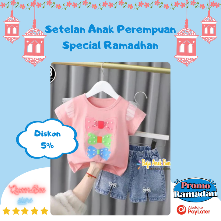 SETELAN ANAK PEREMPUAN 1-5 TAHUN TRIPLE PITA DENIM / ONESET ANAK CELANA DENIM / BAJU ANAK BANGSA