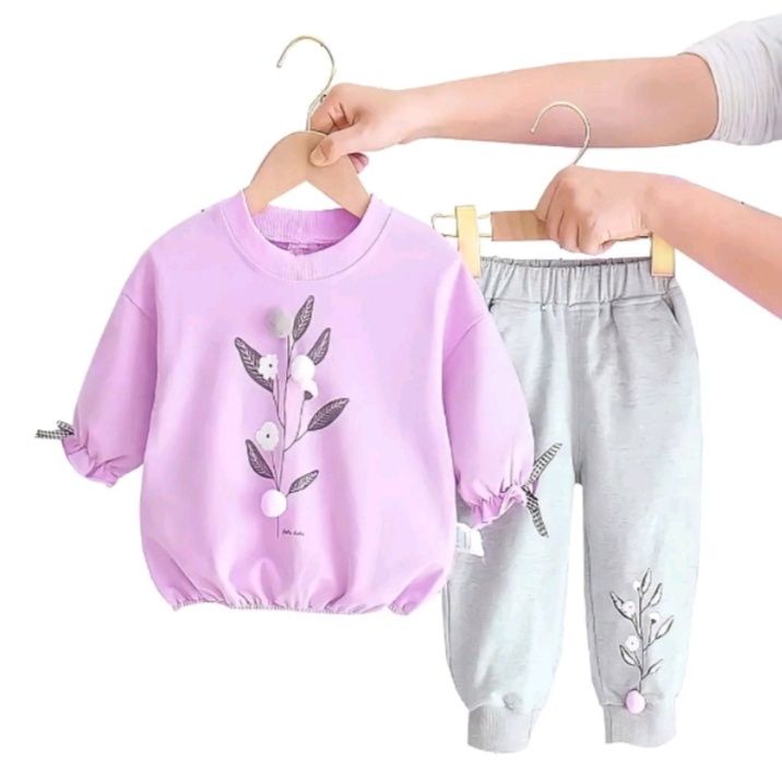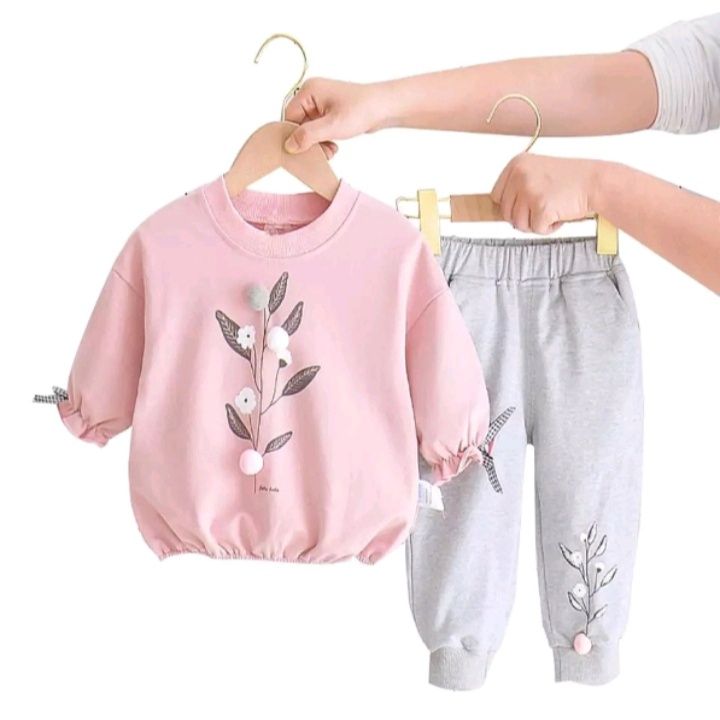 [Star] Setelan Anak Perempuan Usia 0-6 Tahun Oneset Kaos Motif Bunga & Celana Panjang Model Korean Style Style