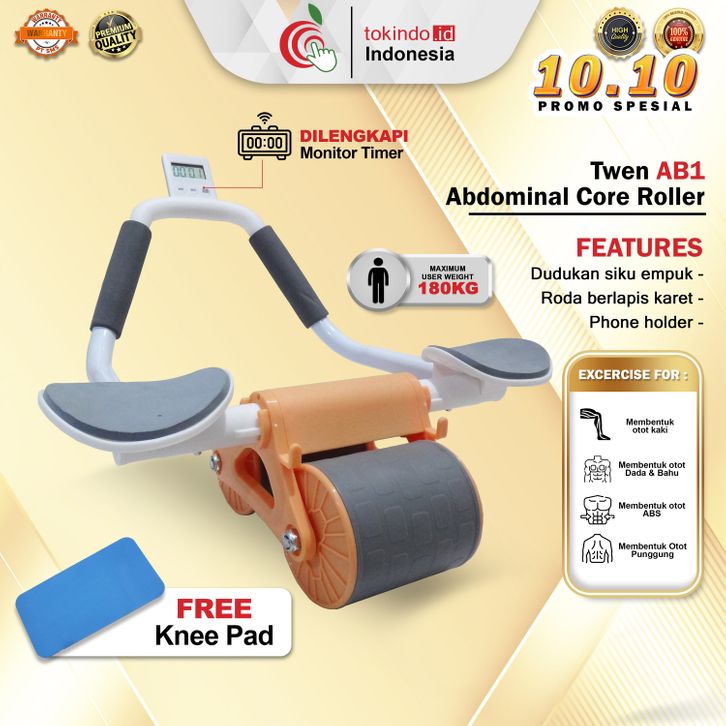 TWEN Ab Wheel 1 Ab Roller Wheels Plank Trainer Abdominal Core Roller Automatic Fitness Perut Multifungsi