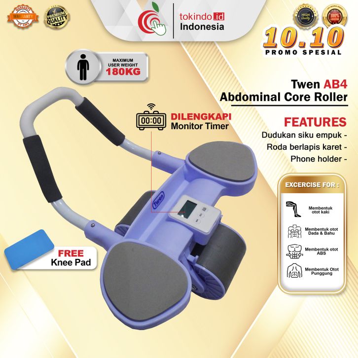 TWEN Ab Wheel 4 Ab Roller Wheels Plank Trainer Abdominal Core Roller Automatic Fitness Perut Multifungsi