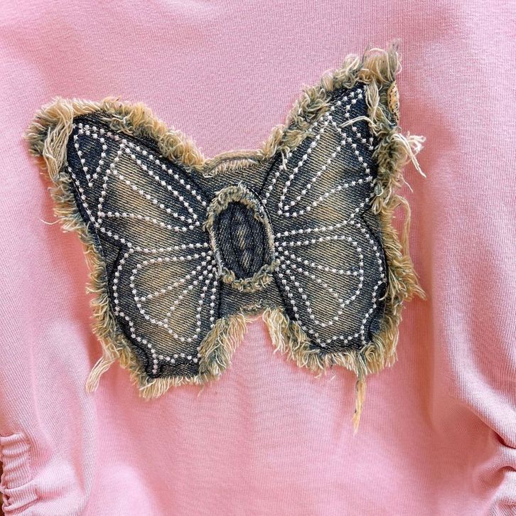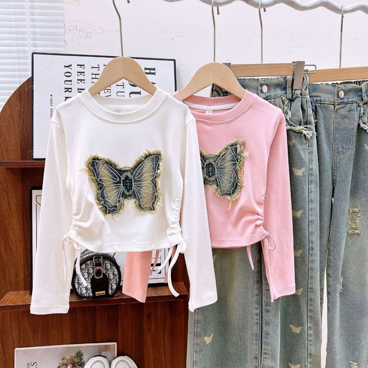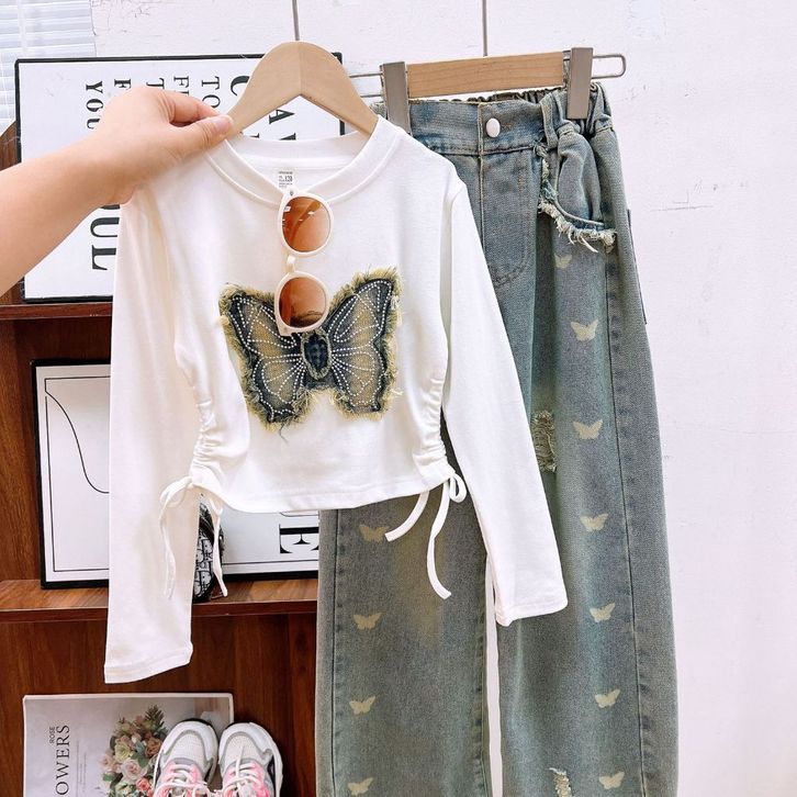 [Star] SETELAN ANAK CEWEK IMPORT STELAN ANAK KUPU SERUT LENGAN PANJANG CELANA JEANS KEKINIAN 110-160 SET ANAK PEREMPUAN