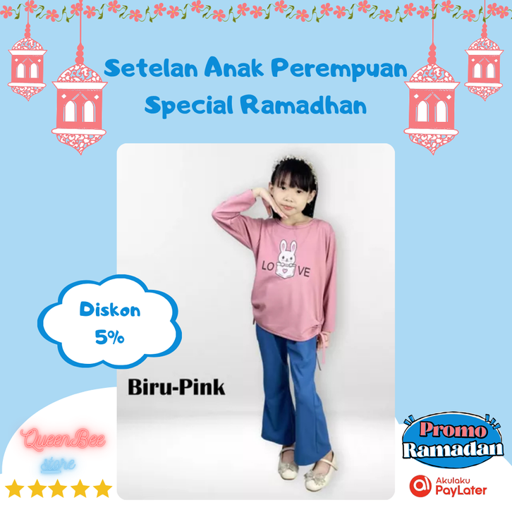 Setelan Anak Perempuan Termurah & Celana Cutbray Motif Bunny Love