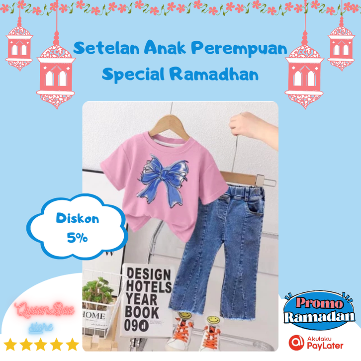 Kaos Anak Setelan Anak Perempuan Dan Celana Denim Panjang Anak 1-5 Tahun