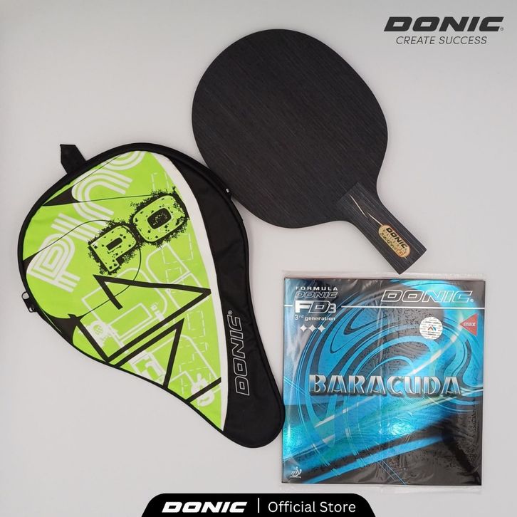 Bat Pingpong Donic Black Devil Penholder + Karet Donic Baracuda Tas Bat Set