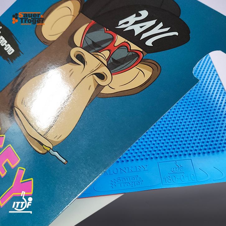 Karet Bat Tenis Meja Sauer & Troger Monkey Blue Bintik Panjang OX