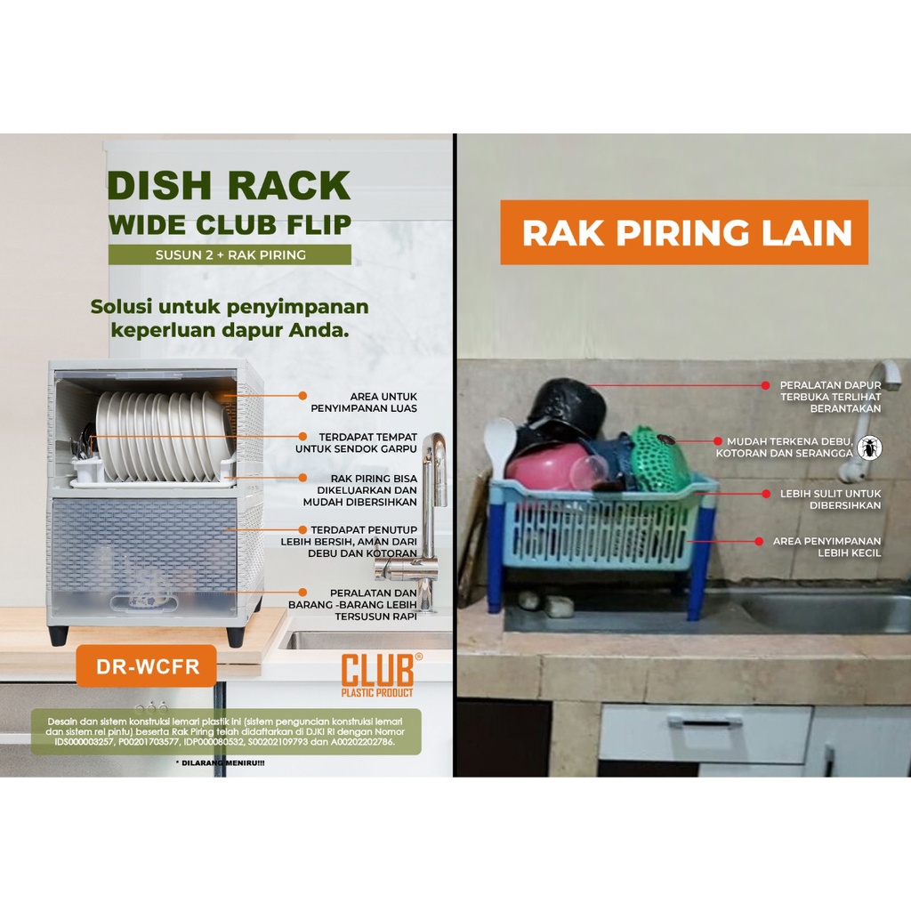LEMARI PIRING DISH RACK WIDE CLUB SUSUN 5 4 3 2 1 RAK DAPUR PLASTIK PINTU TRANSPARAN FLEKSIBEL TEBAL KUAT ORIGINAL