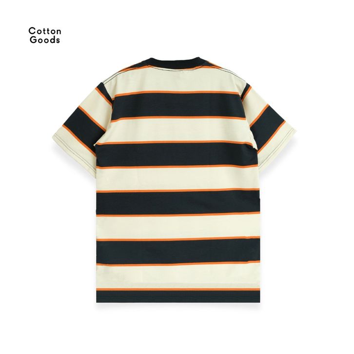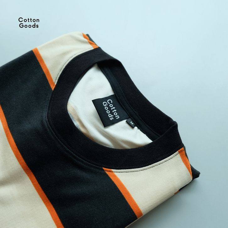 Cotton Goods Kaos Oversized Striped Tiga Twill Spandex Cleano Black Cream Orange Tees Kaos Pria Kaos Kasual Kaos Garis