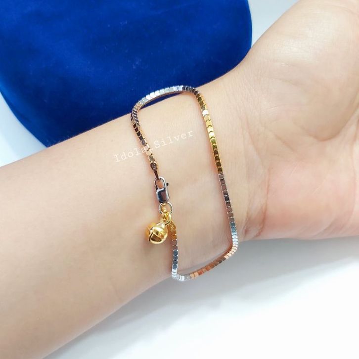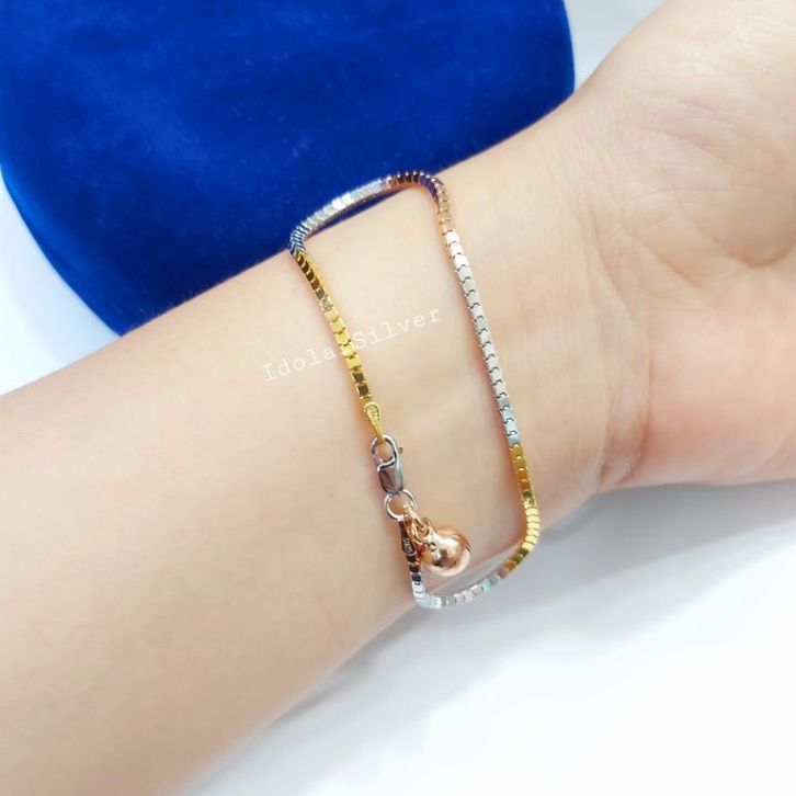 GELANGG PERAK ASLI SILVER WANITA 925 LAPIS EMS MODEL MILANO KOMBINASI - PERHIASAN PERAK WANITA
