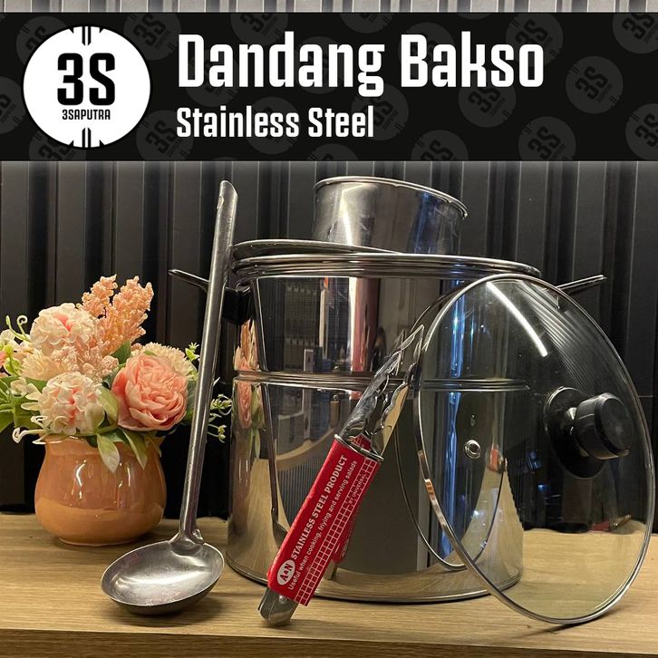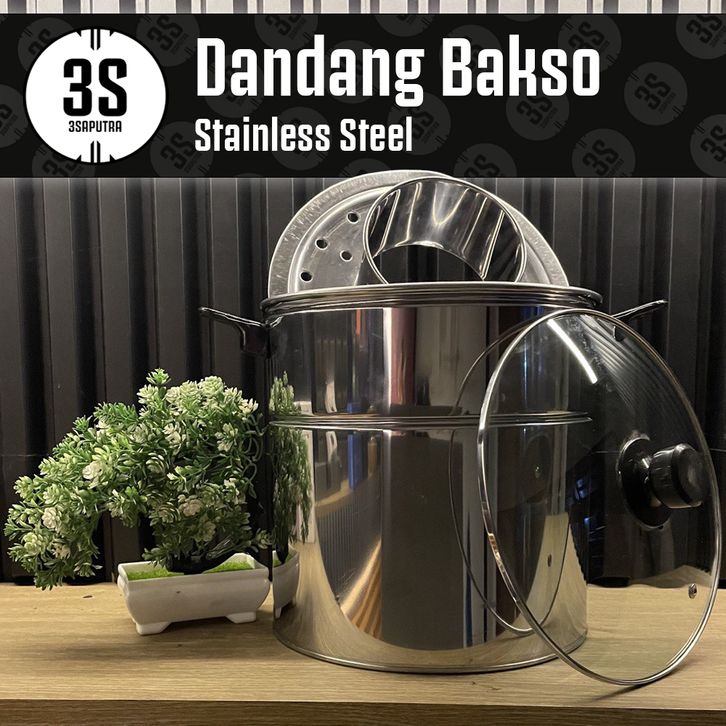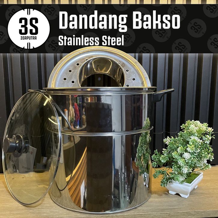 Dandang Bakso Sekat 22 / 24 / 26 / 28 / 30Cm Panci Stainless Steel Tutup Kaca Dandang Bakso Aluminium Panci Bakso Malang