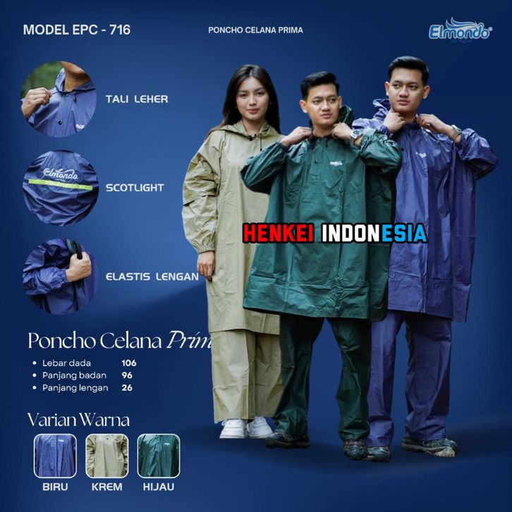 Jas Hujan Ponco Elmondo Prima - Mantel Ujan Dewasa Pria dan Wanita KUALITAS PREMIUM