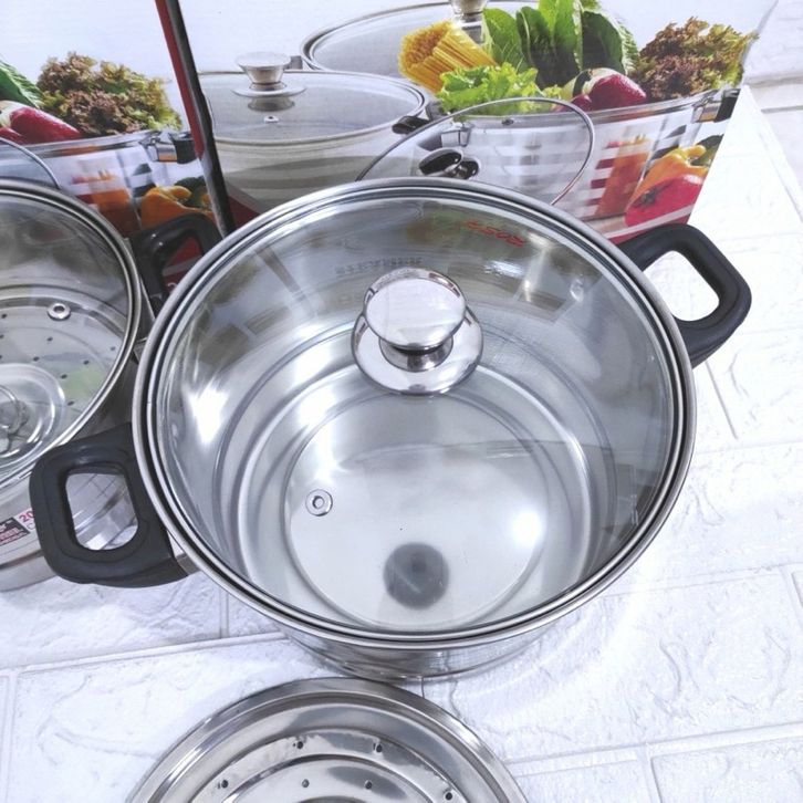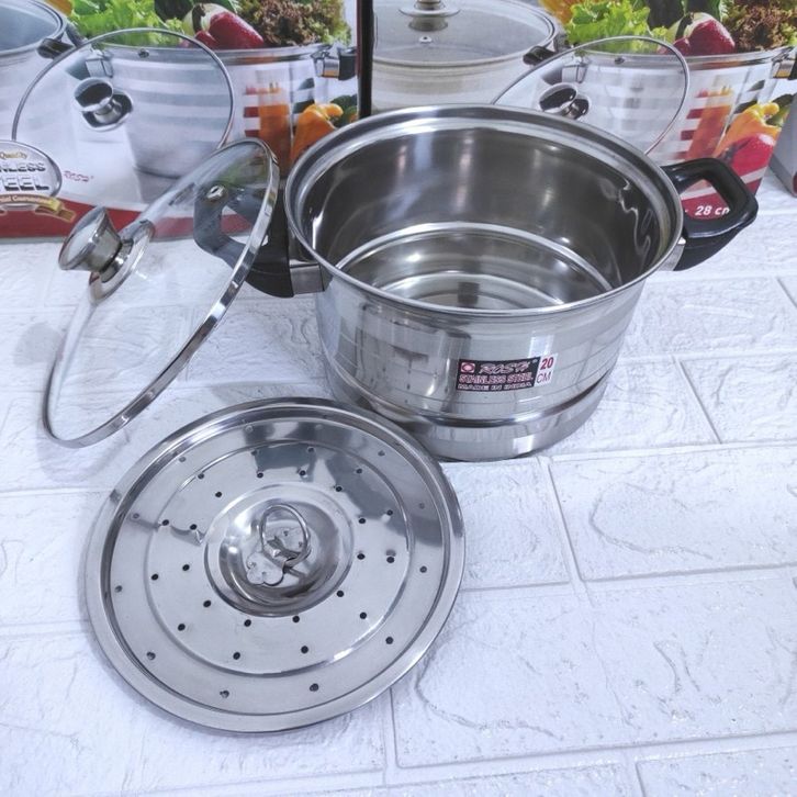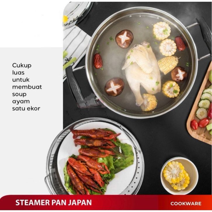 Panci Kukus Steamer Japan Stainless Stell Panci Dandang Steamer Panci Panca Guna 22 24 26 28 30Cm Panci Steamer Jepang T