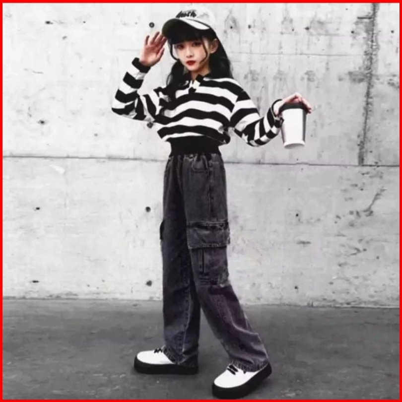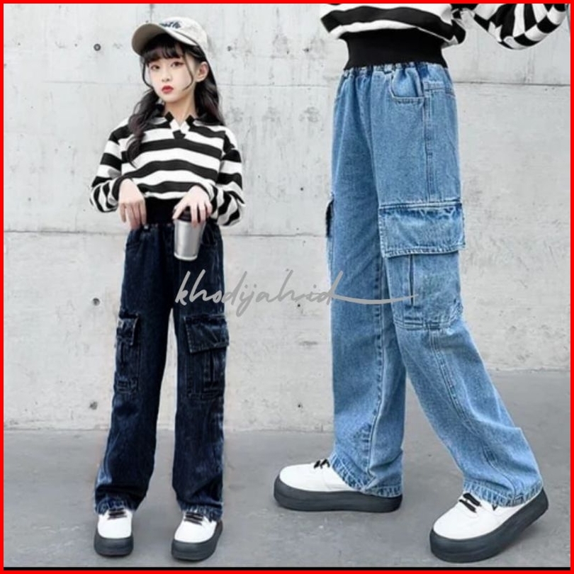 Celana Kulot Cargo Jeans Anak Perempuan Usia 6-20 Tahun Kulot Kargo Anak Cewek Tanggung Korean Style