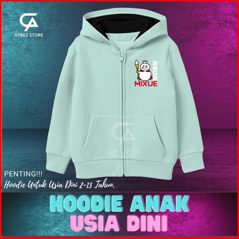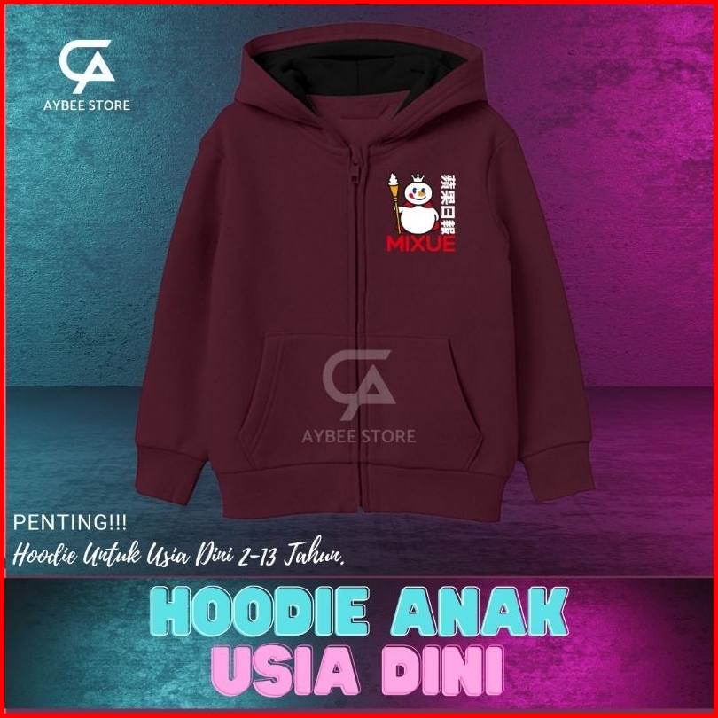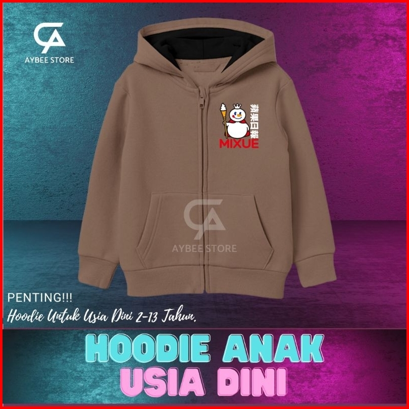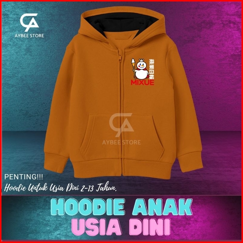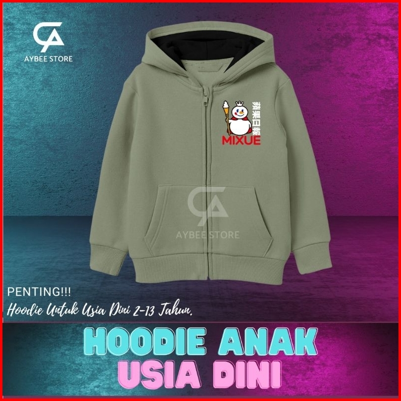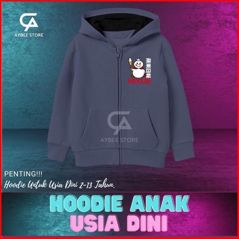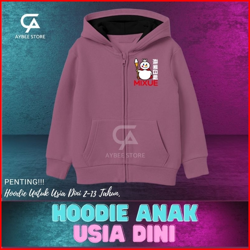 Jaket Hoodie Anak Zipper Mixue Untuk Anak Dini Usia 2 3 4 5 6 7 8 9 10 11 12 13 Tahun.