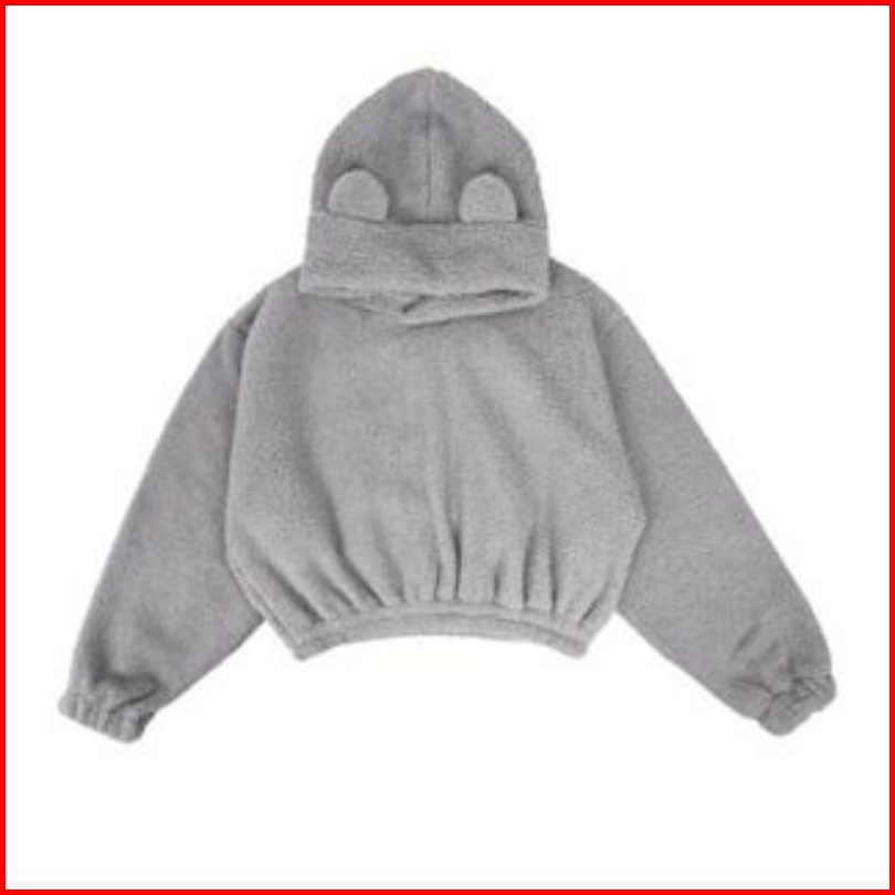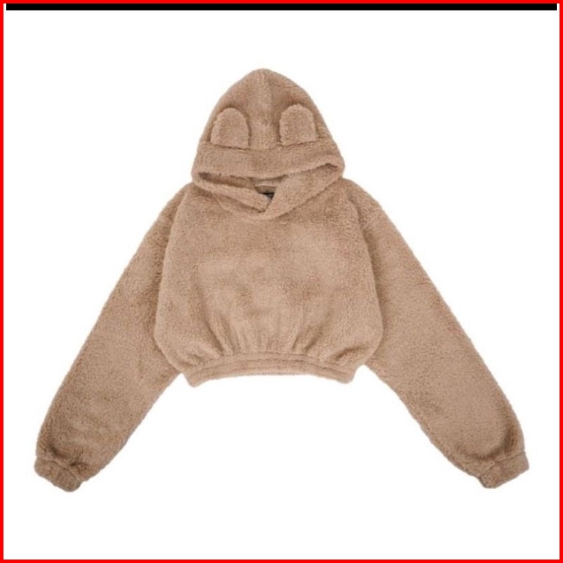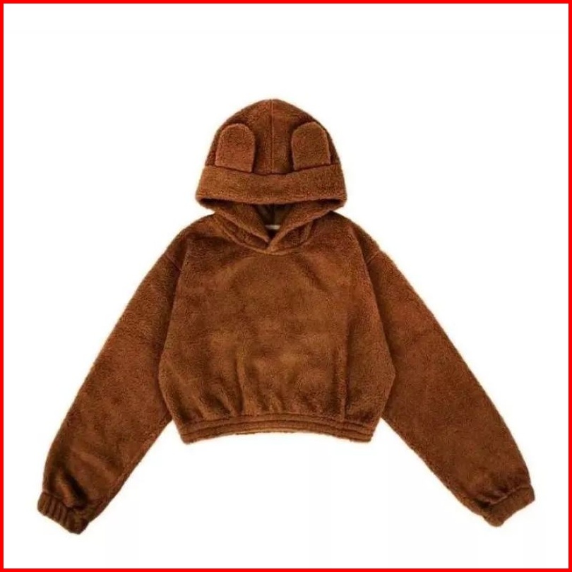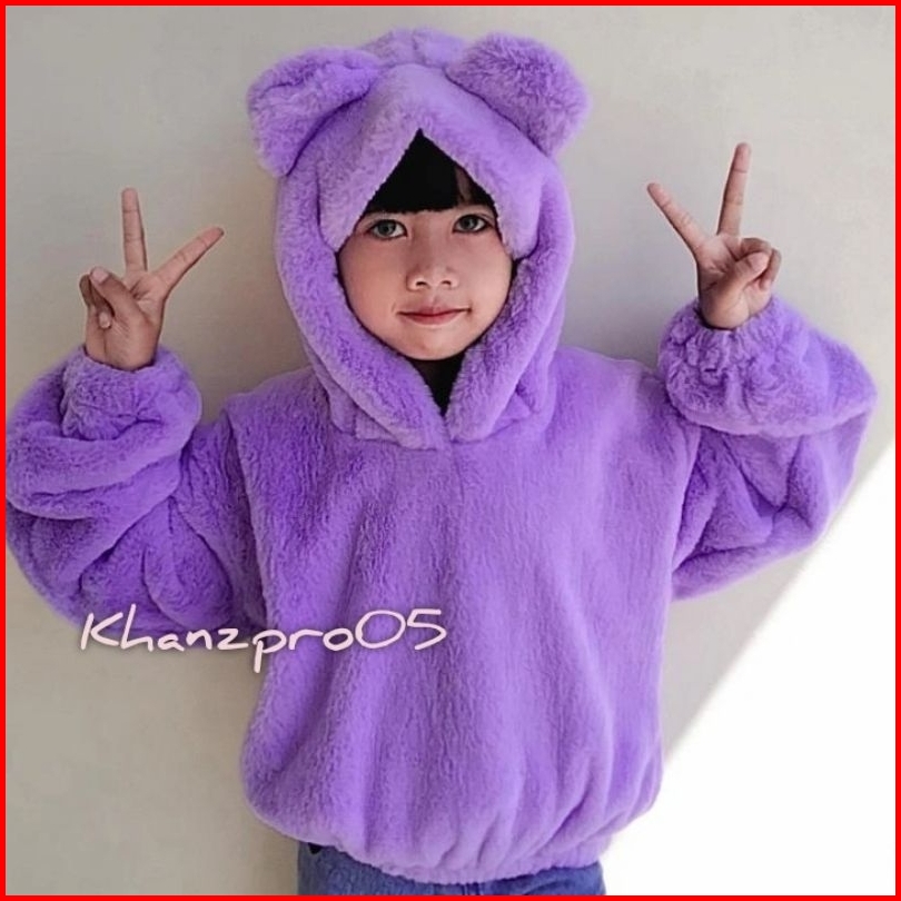 Hoodie Oversize Sherpa Bear Croop Anak Jaket Bulu Halus Anak Perempuan Usia 2 Sampai 12 Tahun