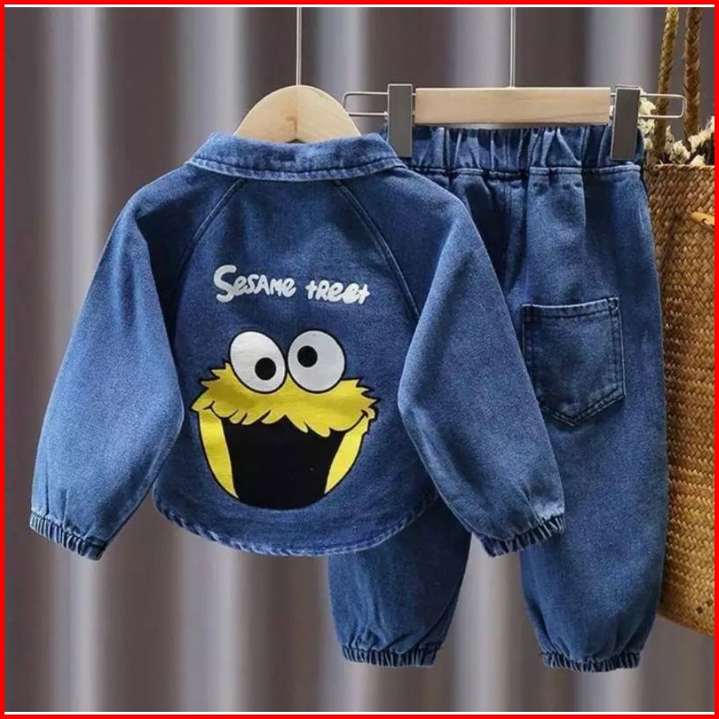 Setelan 1-5 Tahun Elmo Denim Setelan Anak Perempuan Setelan Denim Anak Baju Anak Bangsa