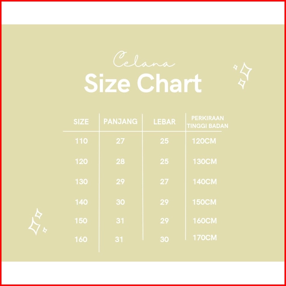 100 (2-3 Tahun), 110 (3-4 Tahun), 120 (4-5 Tahun), 130 (5-6 Tahun), 140 (6-8 Tahun), 150 (8-9 Tahun), 160 (9-11 Tahun)