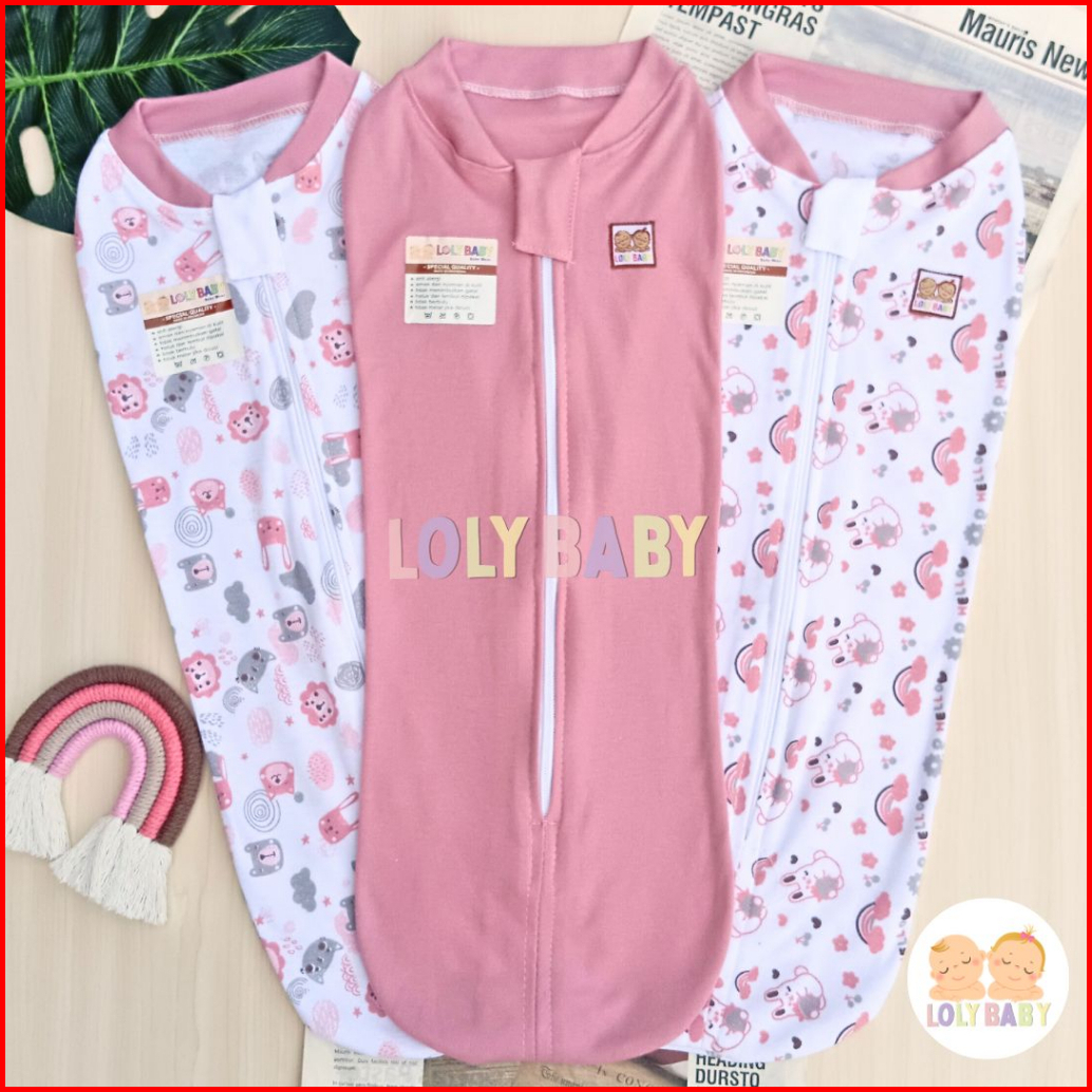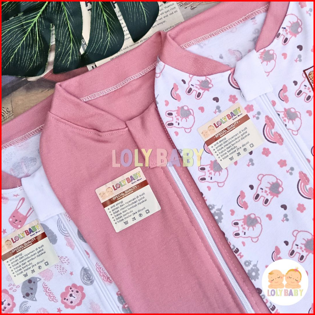 3 Pcs Bedong Resleting Bayi Baru Lahir Serian Pink Merk Loly Baby Sni