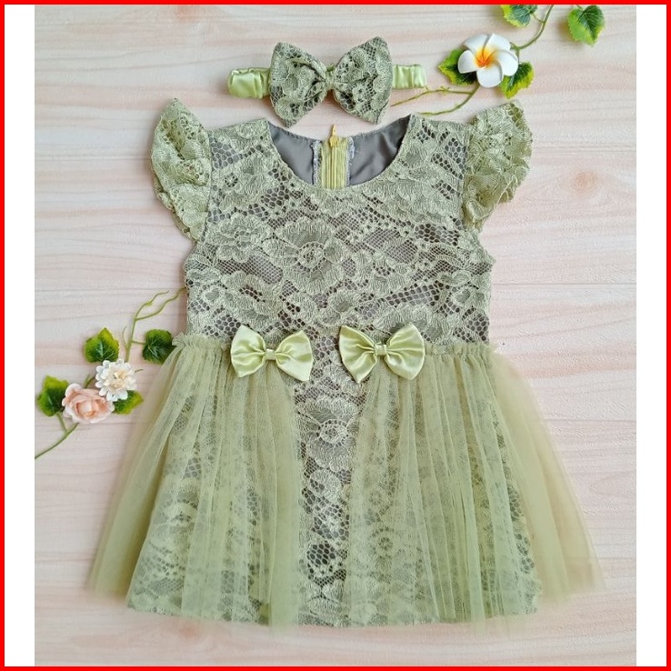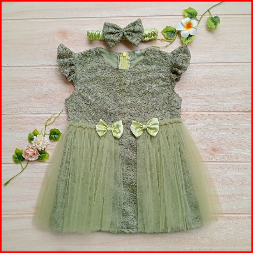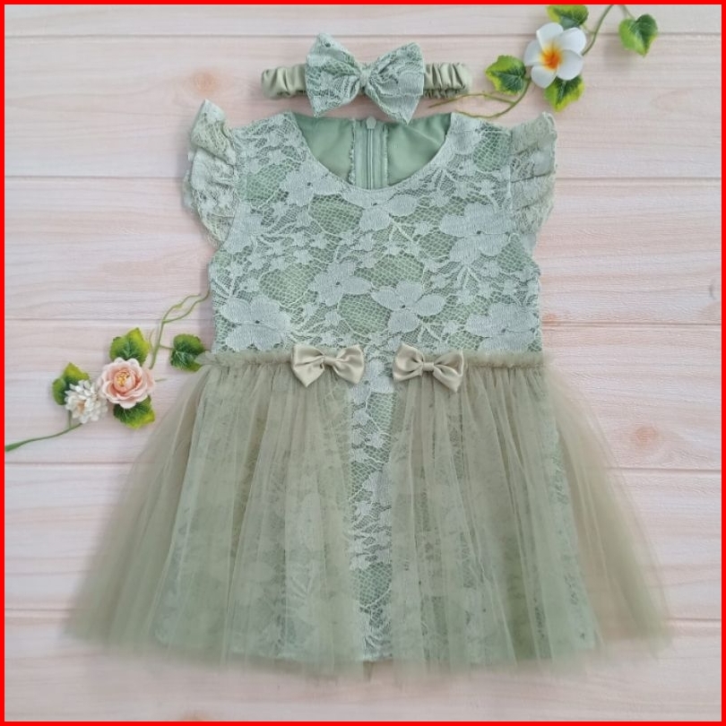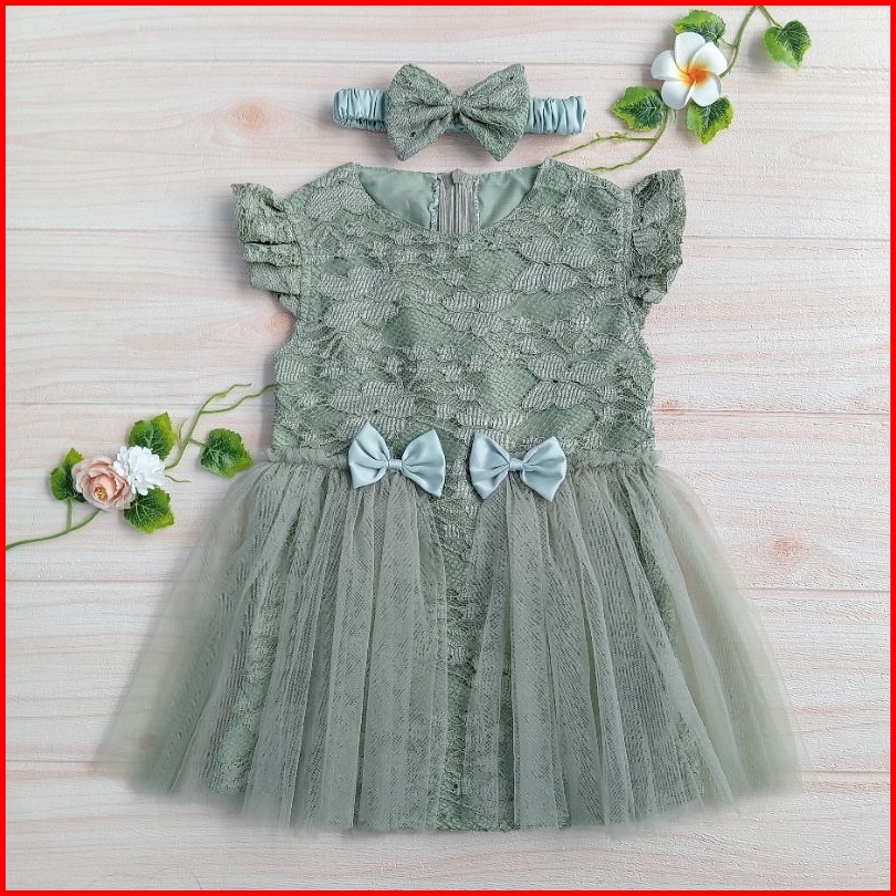 Dress Anak Perempuan Gaun Pesta Bayi Dress Bayi Newborn Dress Anak Warna Sage Green