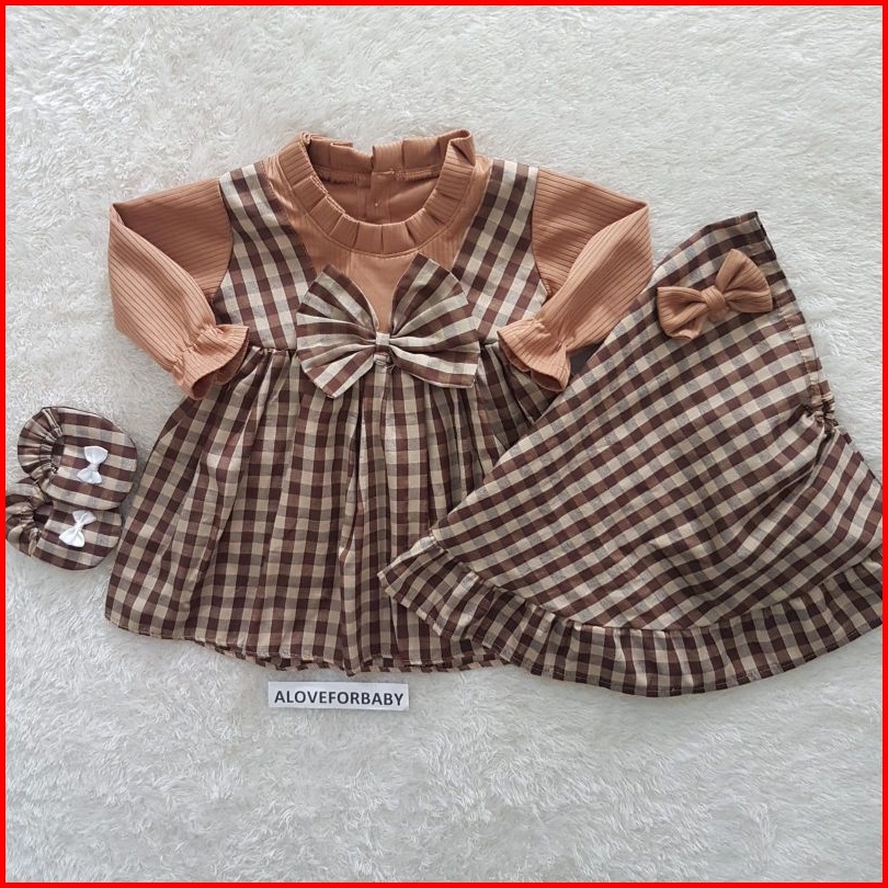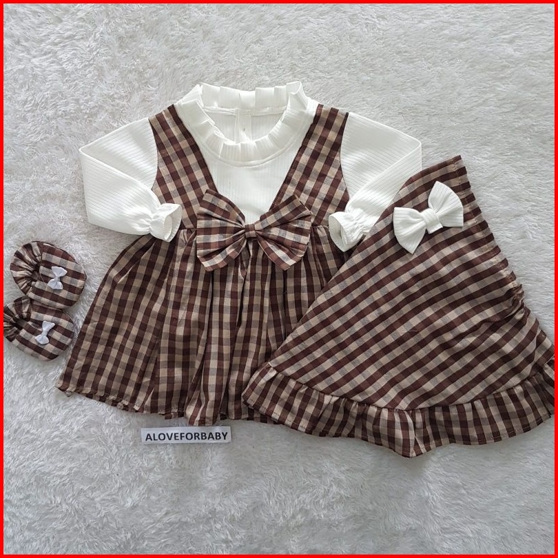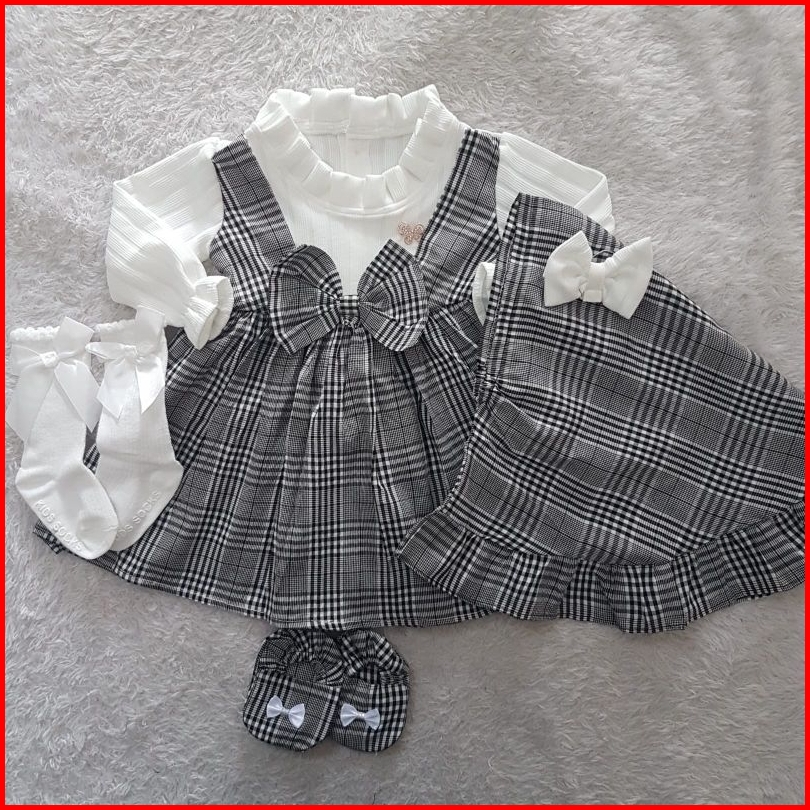 Baju Bayi Perempuan Dress Gingham Set