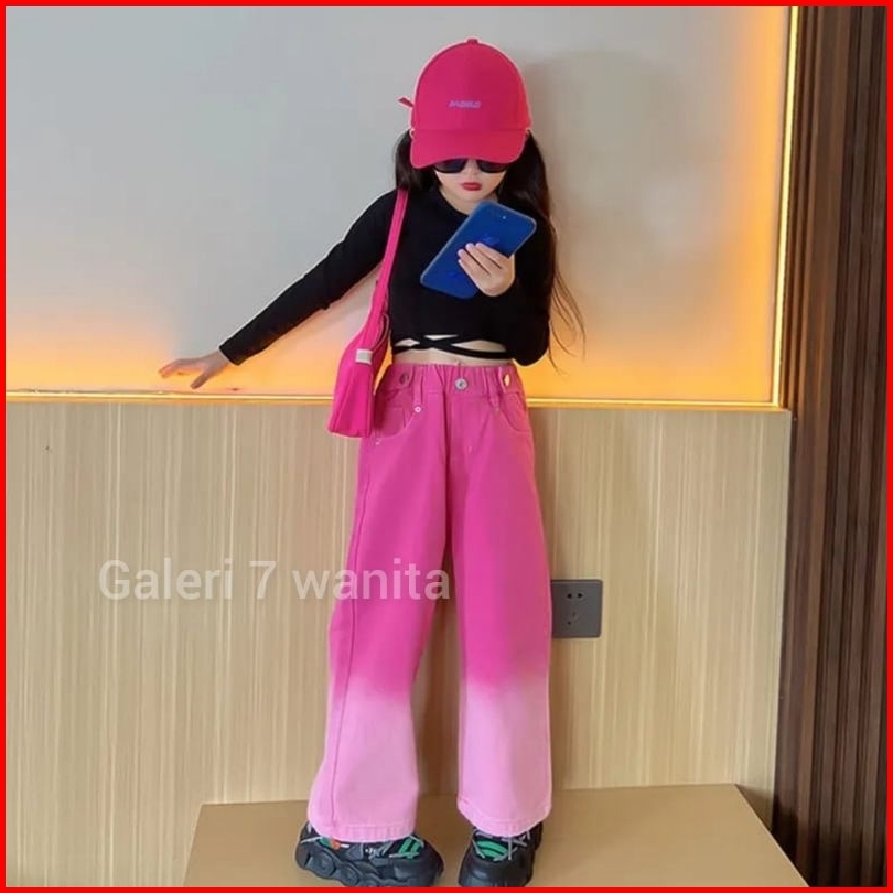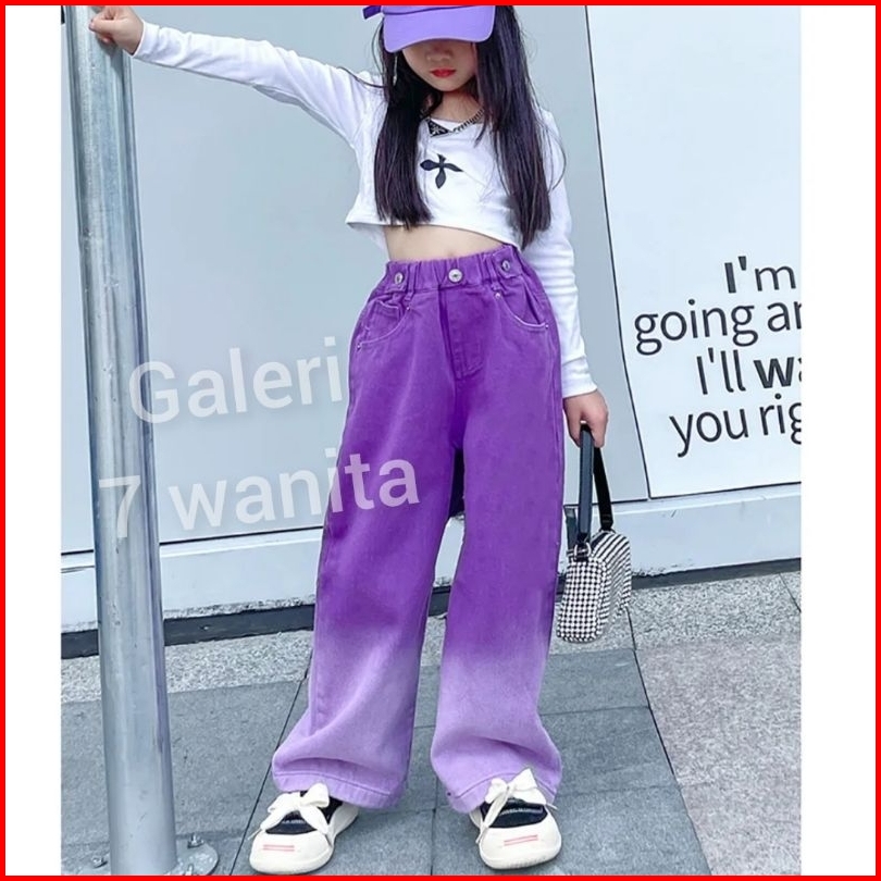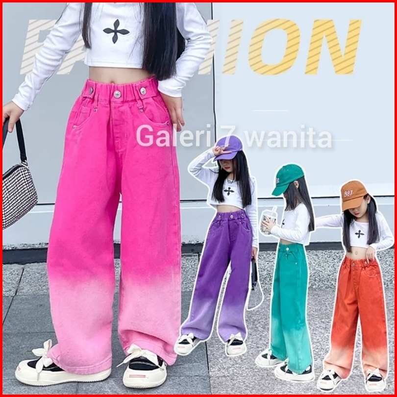 Celana Kulot Jeans Gradasi Anak Perempuan Usia 6-11 Tahun