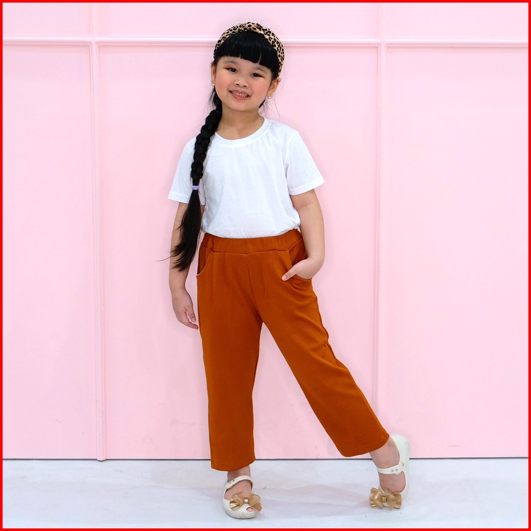 Kulot Celana Panjang Anak Perempuan Bahan Rib Knitted Premium Zara Usia 1-12tahun Lovely Golden