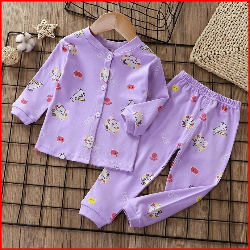 Mommycare Baju Tidur Anak Perempuan Setelan Piyama Bayi Set Lengan Panjang Bahan Lembut Piyama