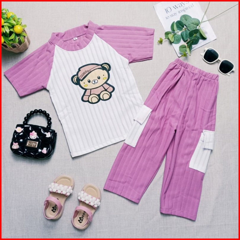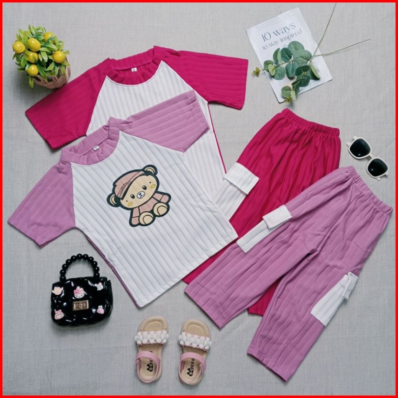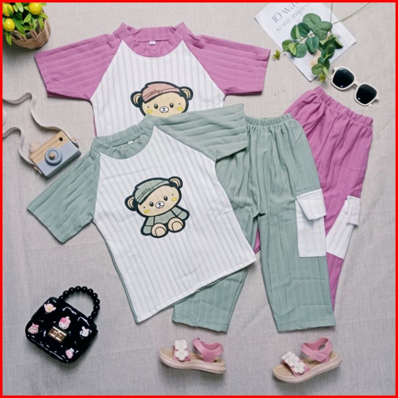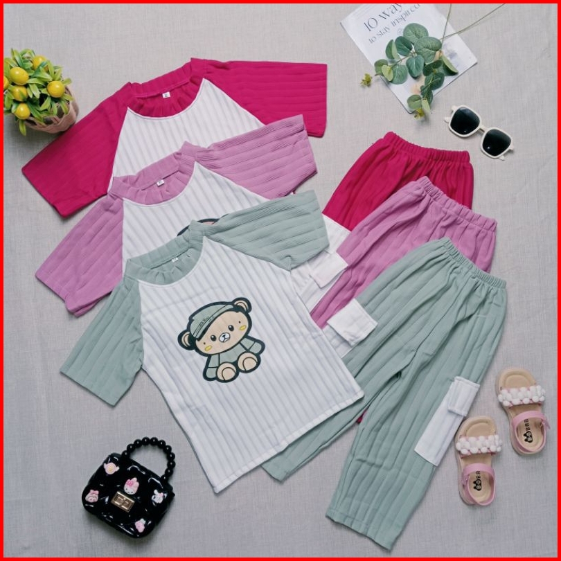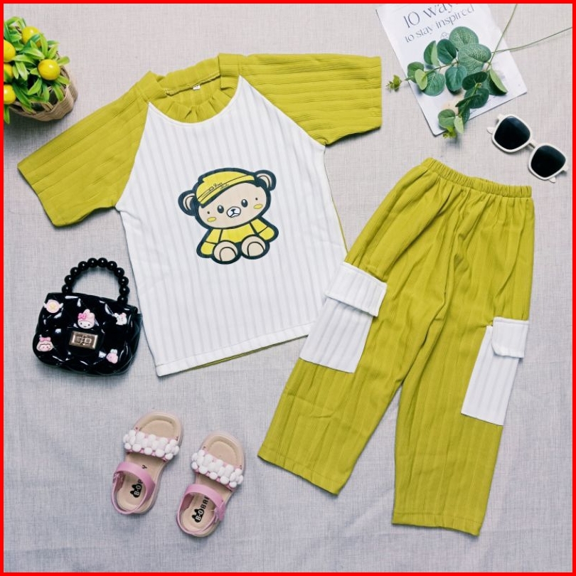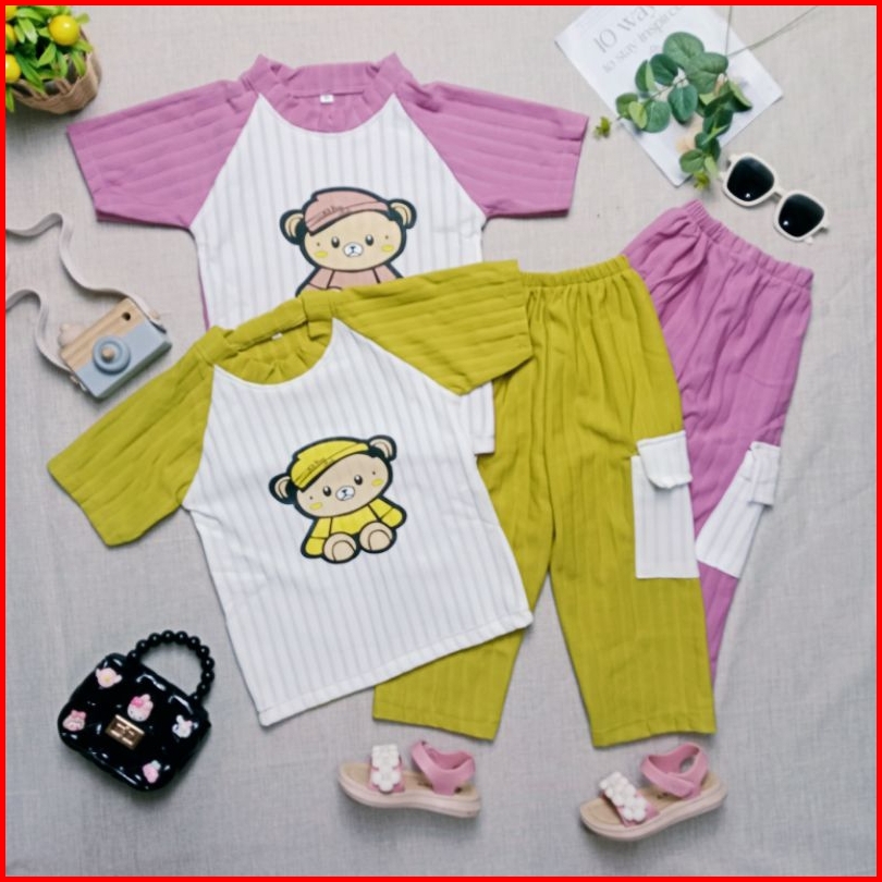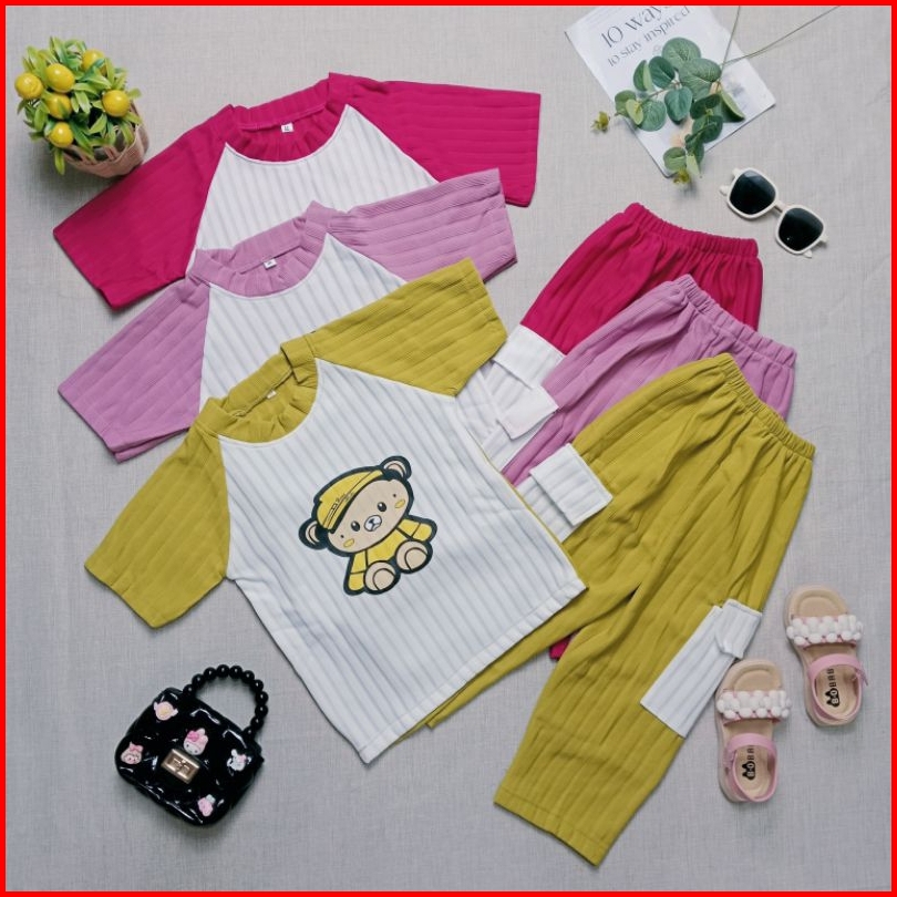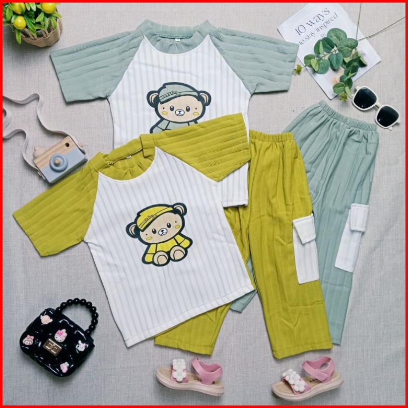 Baju Setelan Anak Lotso Bear Setelan Unisex Knit Hornets Tangan Pendek Usia 2-10 Tahun