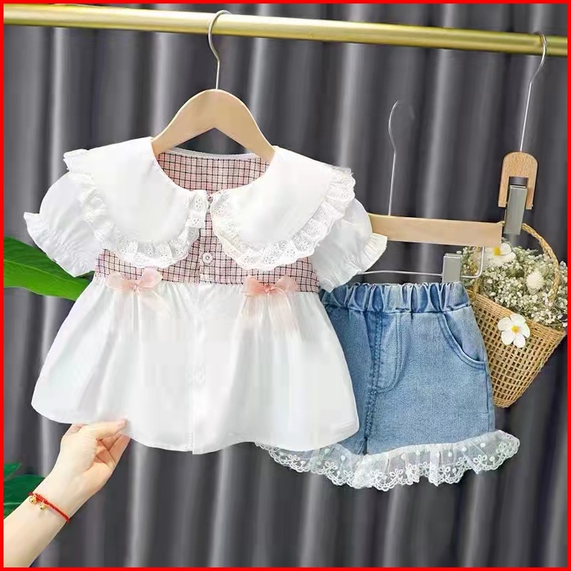 Setelan Baju Anak Perempuan Import Lengan Pendek Usia 1-4 Tahun Setelan Baju Katun Anak Perempuan Import Setelan Baju Je