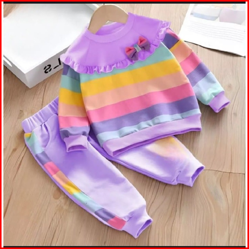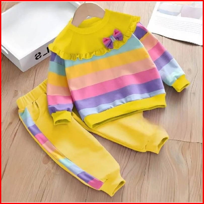 Setelan Sweter Anak Perempuan Baju Dan Celana Panjang Anak Motif Pelangi 1-5 Tahun Ardanbajuanakgrosir