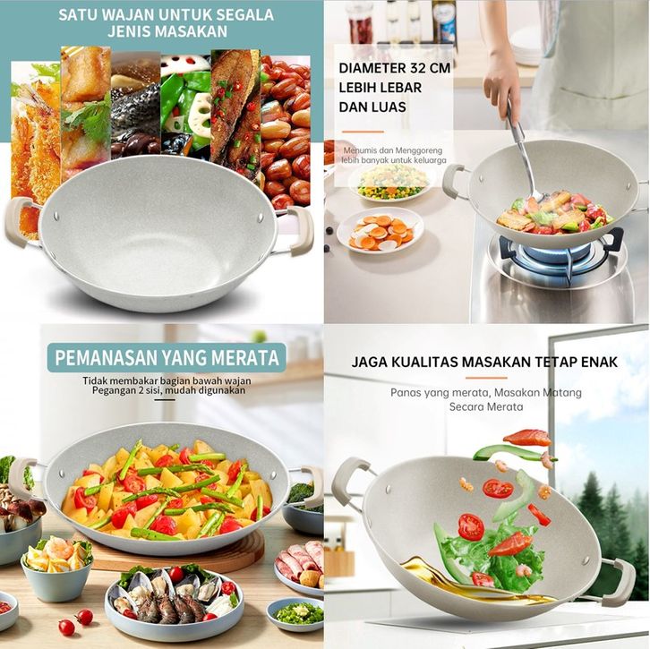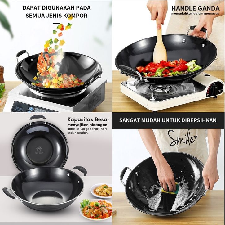 Wajan Penggorengan GM Bear Wajan Penggorengan 32cm 1238 - Kuali Wok Pan Anti Lengket Wajan Anti Lengket Kuali Besar