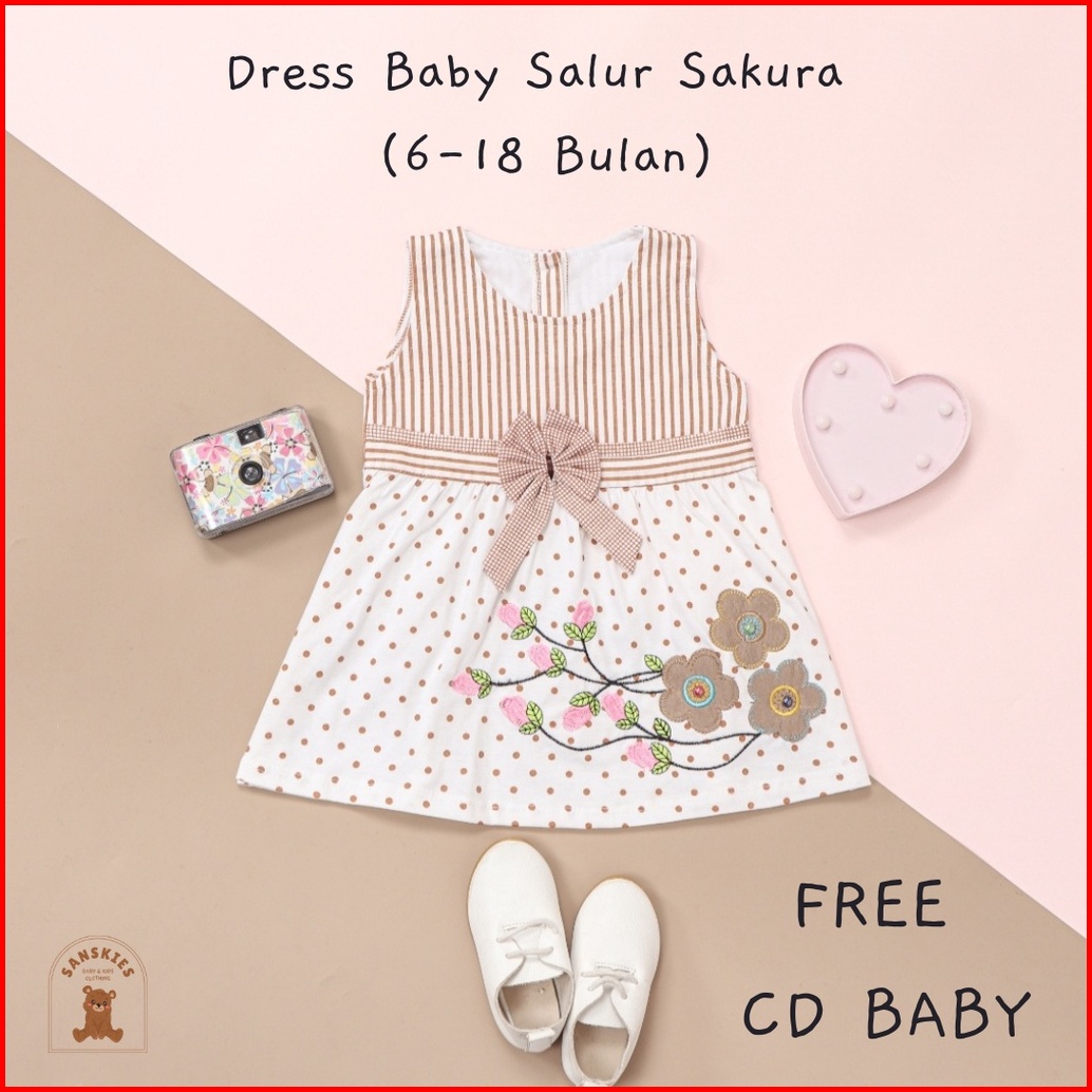 Dress Bayi Perempuan Salur Bunga Sakura Untuk 6-18 Bulan Free Celana Dalam Baby