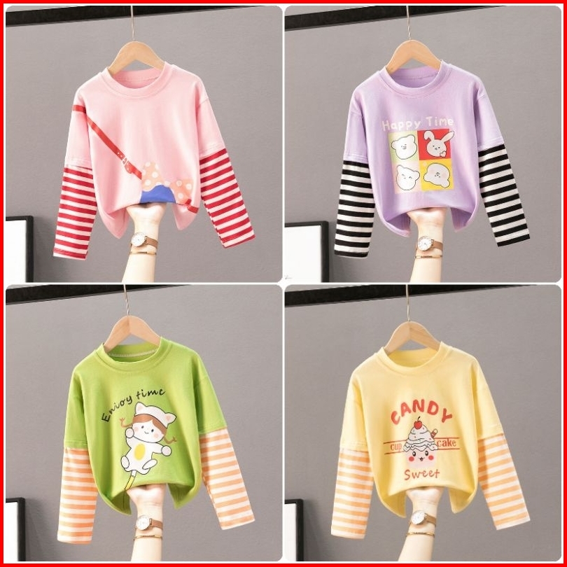 Kaos Imoprt Anak Perempuan Lengan Panjang Atasan Anak Import Motif Lucu Kaos Anak Model Cantik Korean Fashion