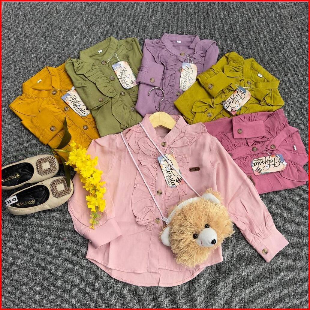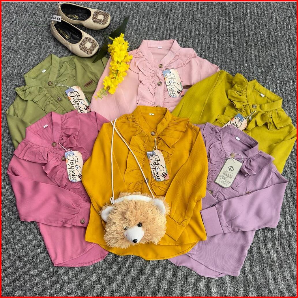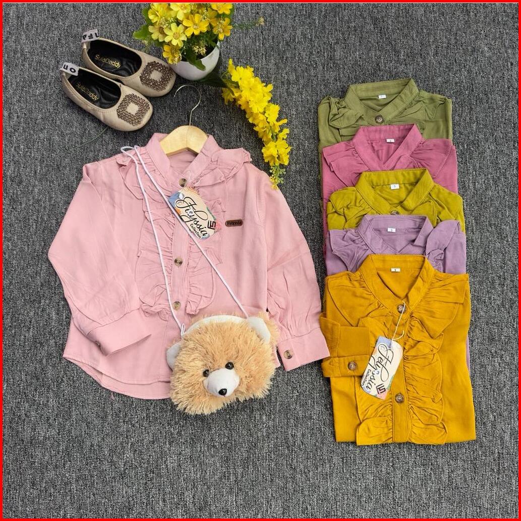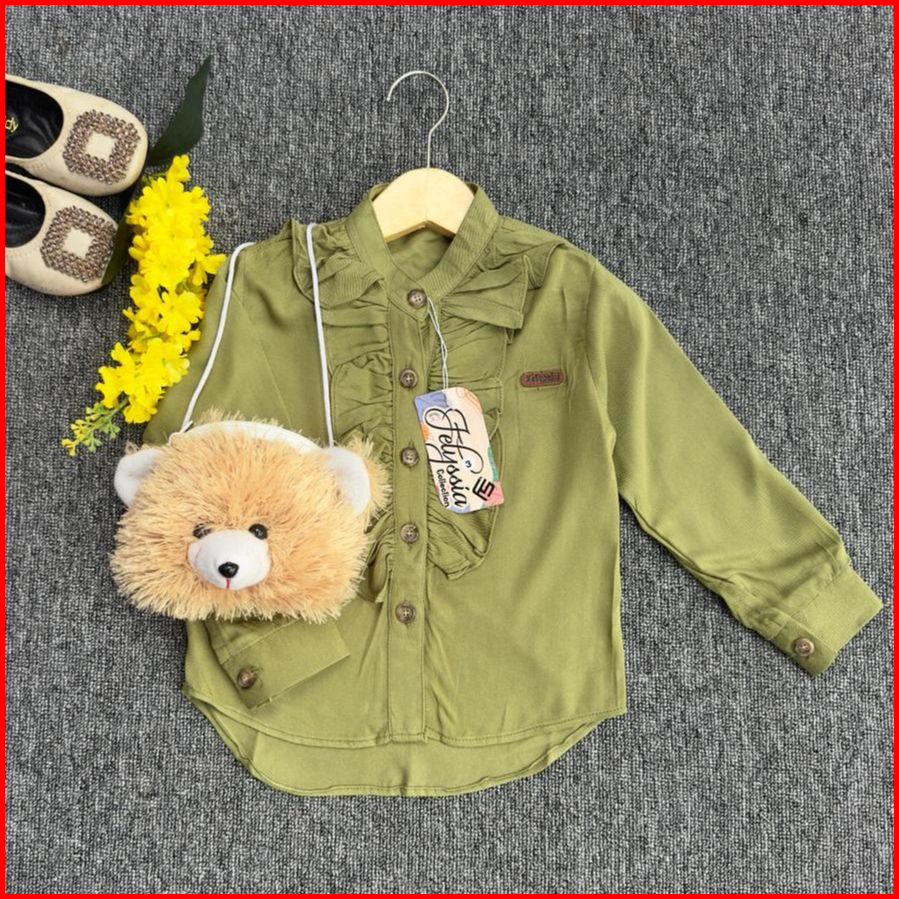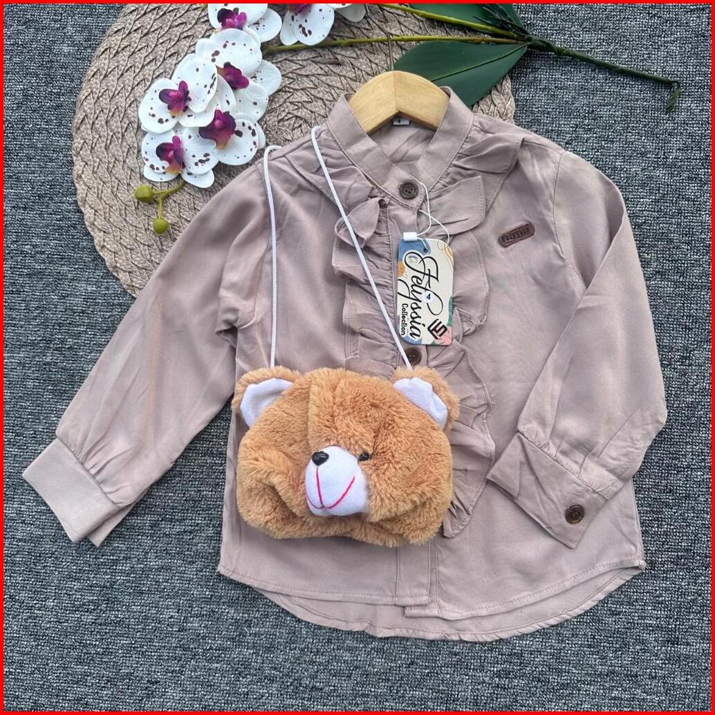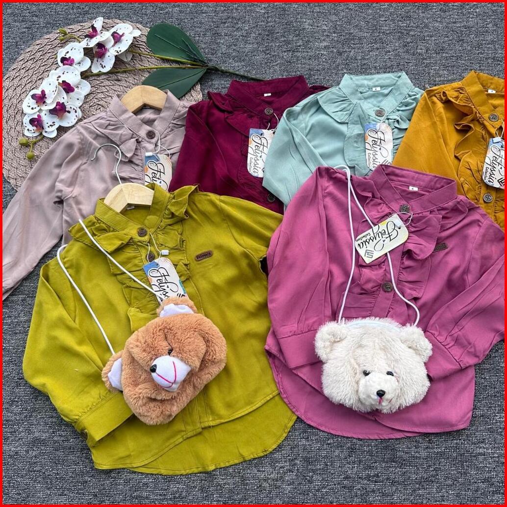 Kemeja Blouse Anak Perempuan Umur 2-7 Tahun Kain Rayon Twill Super Dan Free Tas Boneka