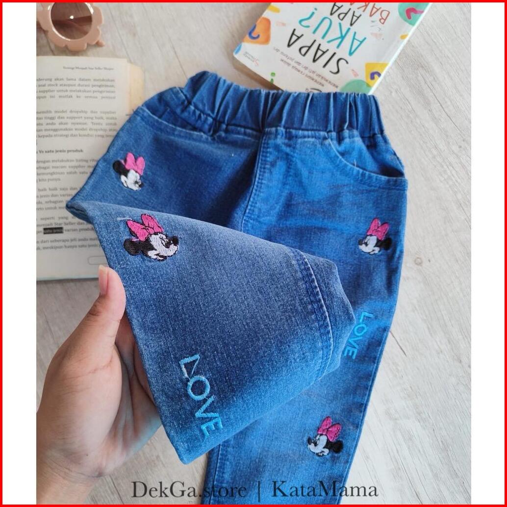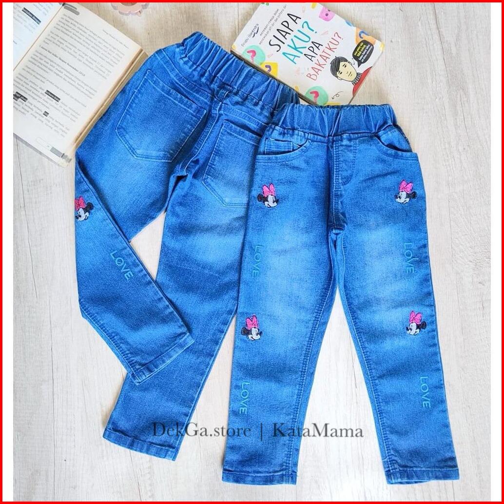 Celana Jeans Panjang Anak Perempuan Motif Bordir Mikilove Jeans Denim Strech Anak 1-12tahun
