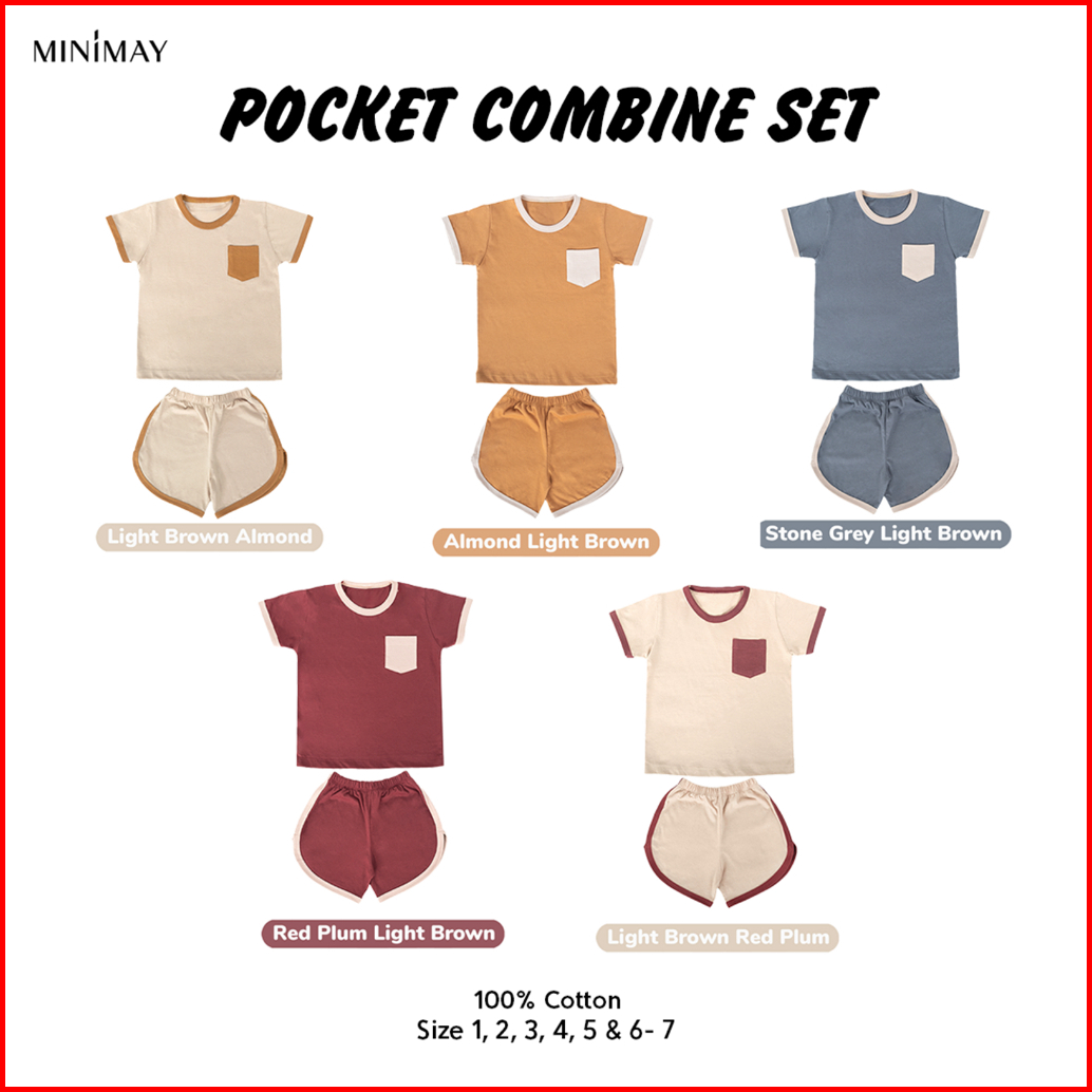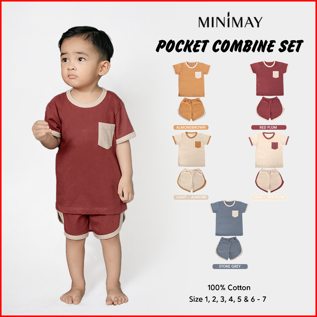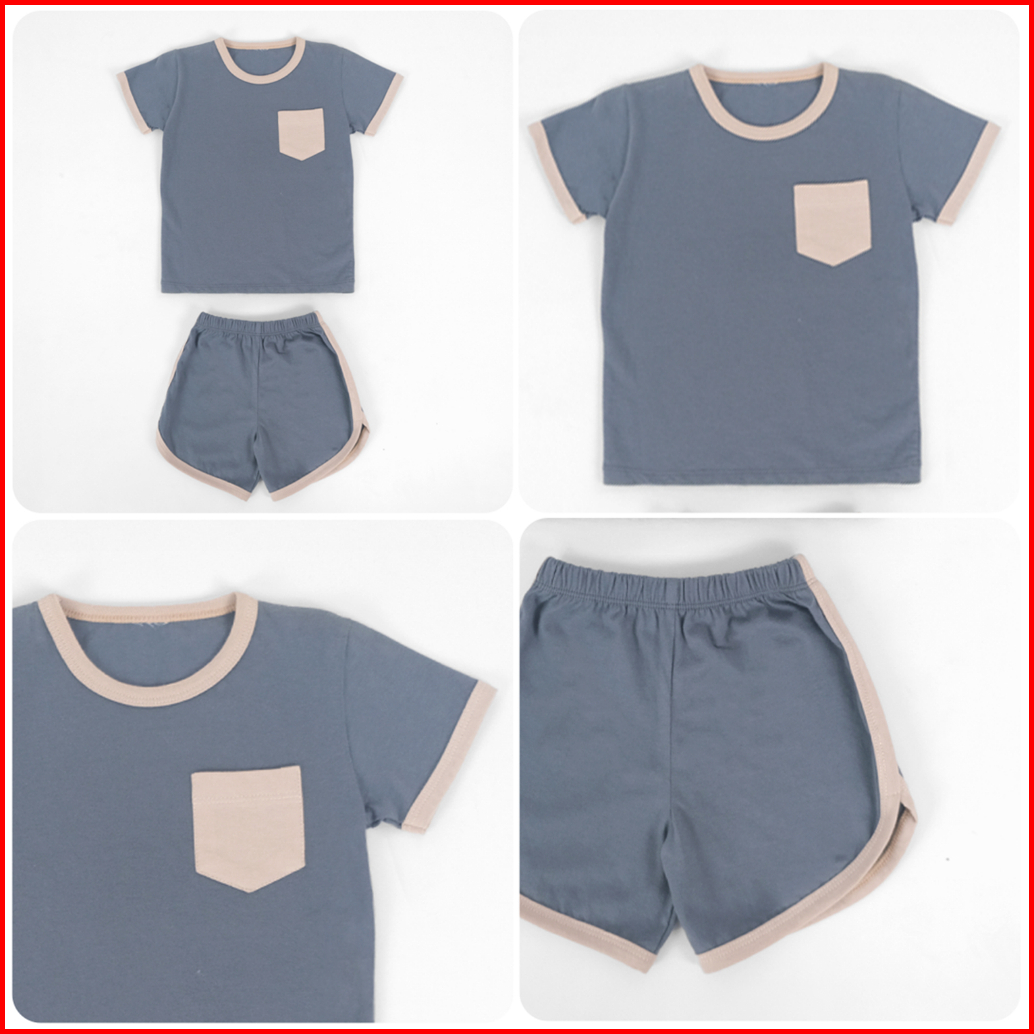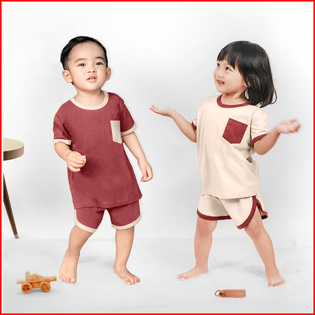 Piyama Baju Anak Two Tones Colors Kaos Anak Saku Kombinasi