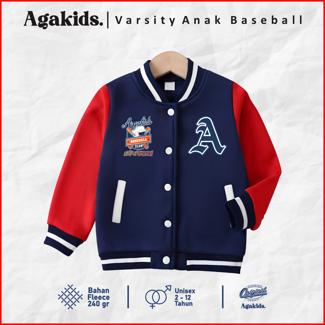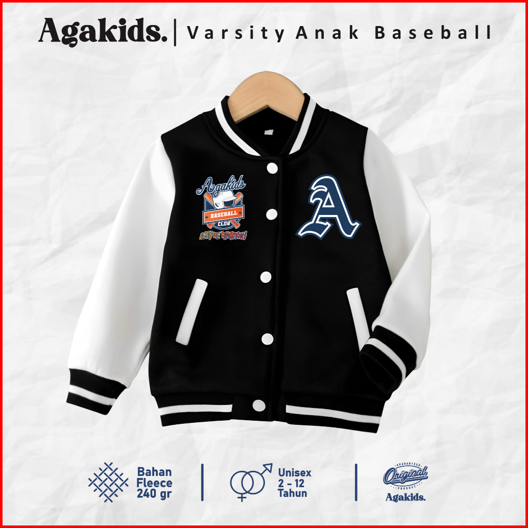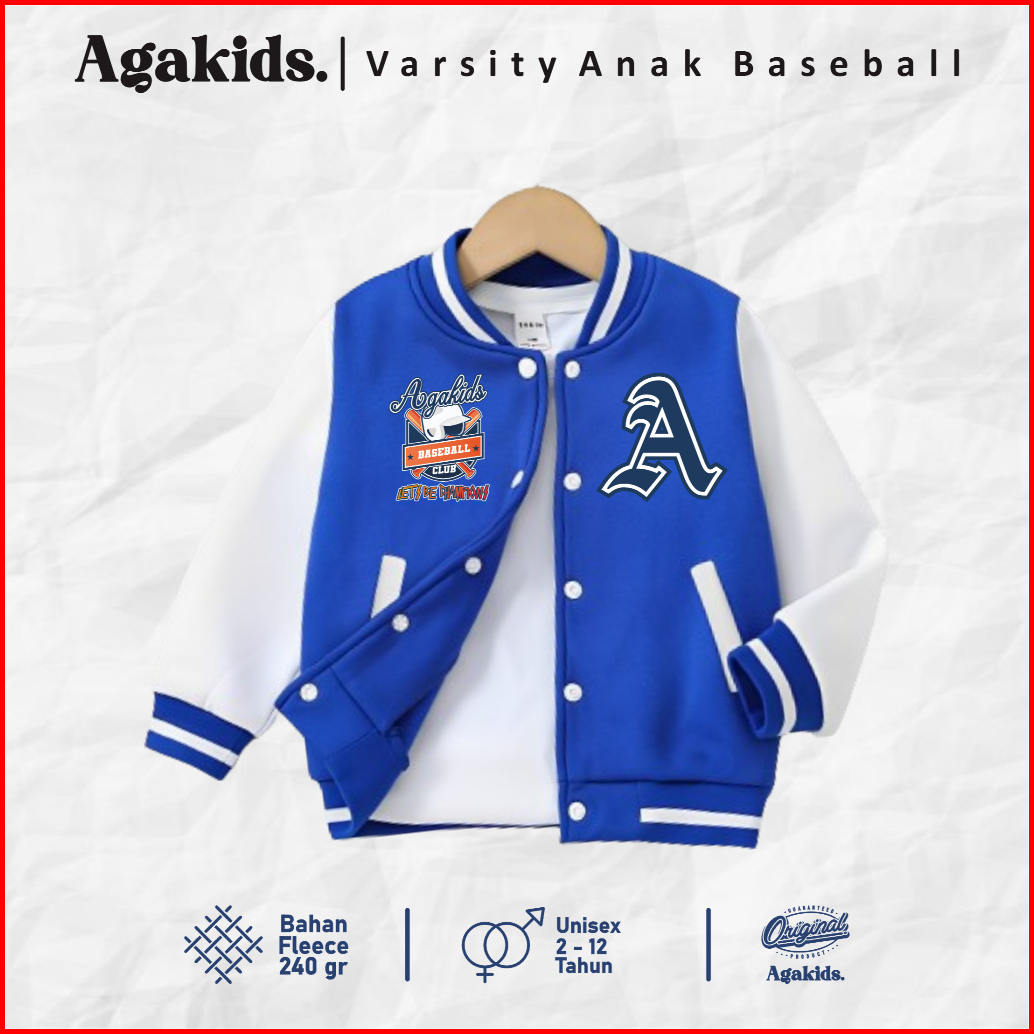 Agakids Jaket Varsity Anak Usia 2 3 4 5 6 7 8 9 10 11 12 Tahun Bisa Custom Inisial A - Z Unisex