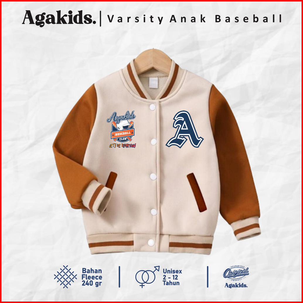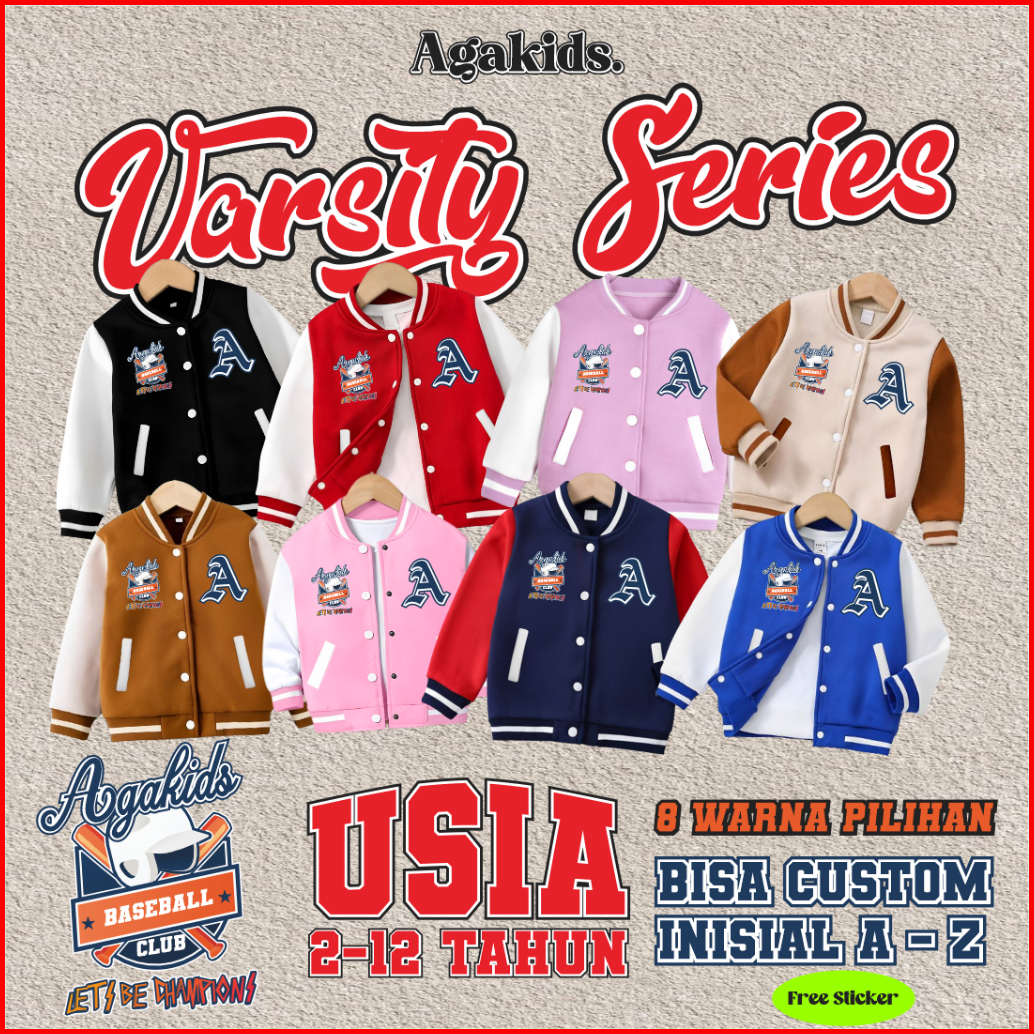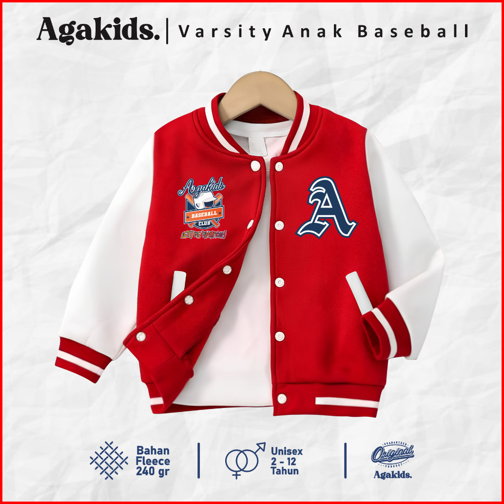Agakids Jaket Varsity Anak Usia 2 3 4 5 6 7 8 9 10 11 12 Tahun Bisa Custom Inisial A - Z Unisex